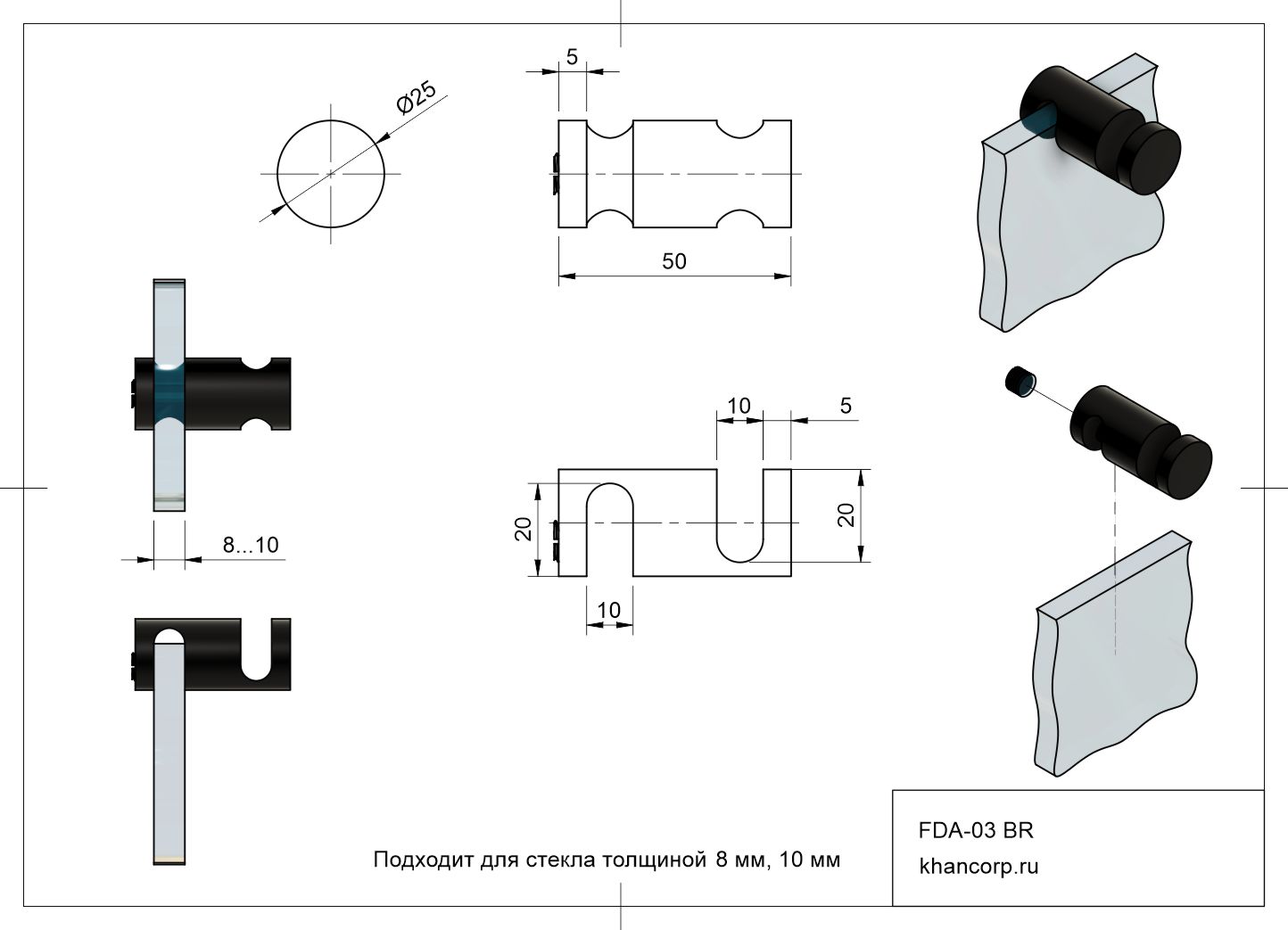 Крючок-полотенцесушитель зажимной FDA-03 BR/BL выполнен из латуни с черным покрытием. Он предназначен для установки на стекло толщиной 8–10 мм.