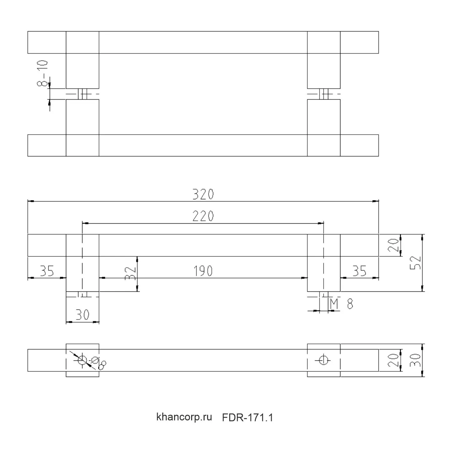 - Общая высота ручки: 320 мм,
