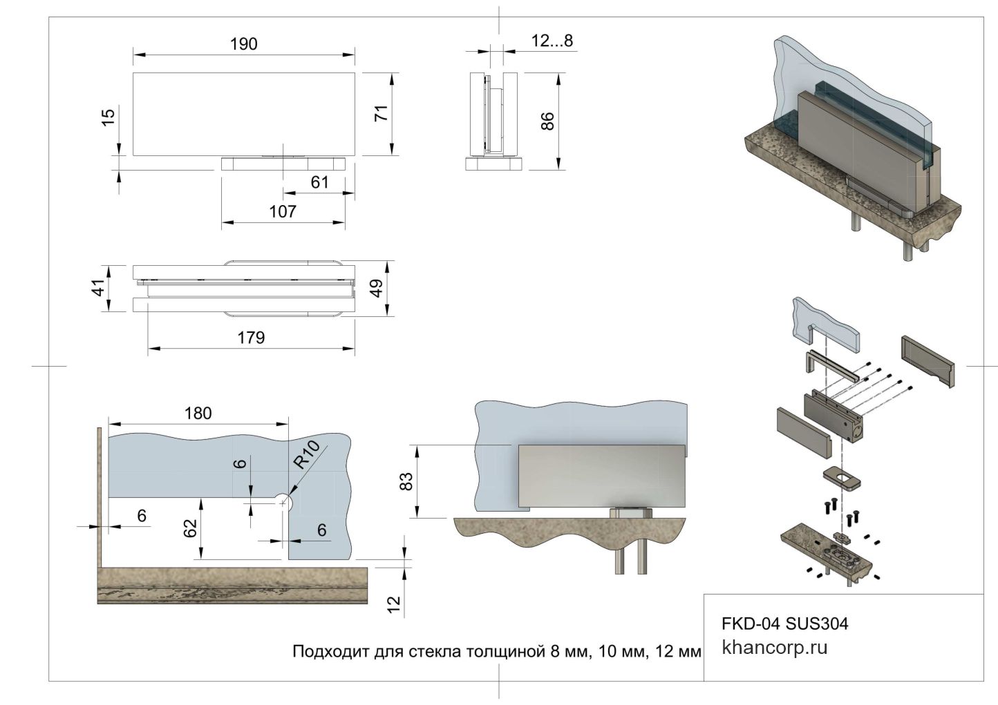 Толщина стекла | 8 мм, 10 мм, 12 мм |