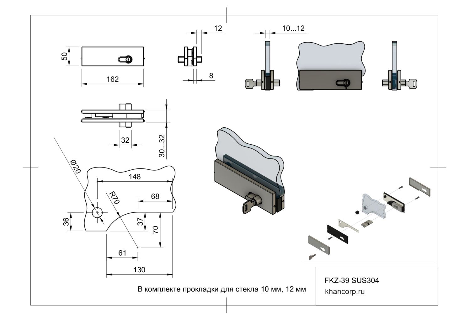 Замок для стеклянных дверей предназначен для установки на нижний край створки двери. Изготовлен из нержавеющей стали SUS304 в матовой отделке.Круглый ригель (язычок) надежно фиксирует положение двери в пол и выдерживает даже серьезные нагрузки. Подходит для дверей из стекла толщиной 10-12 мм. В комплекте ответная пластина, выполнена из нержавеющей стали. Личинка ключ/ключ.