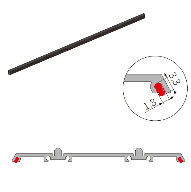Демпферная резинка для рам центрального дверного полотна синхронной раздвижной конструкции FDS-19S, артикул FMPA-23.1 AL/BL, изготовлена из чёрной матовой резины, длина изделия — 1 м.