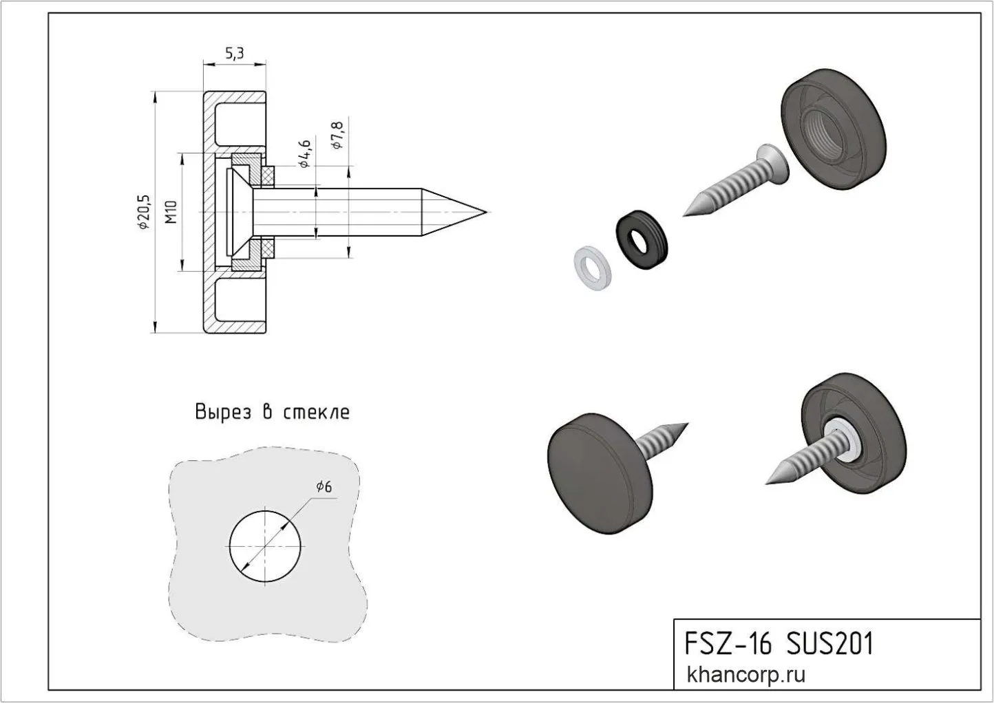 Держатель для зеркала FSZ-16. Круглой формы, диаметр 16 мм.
