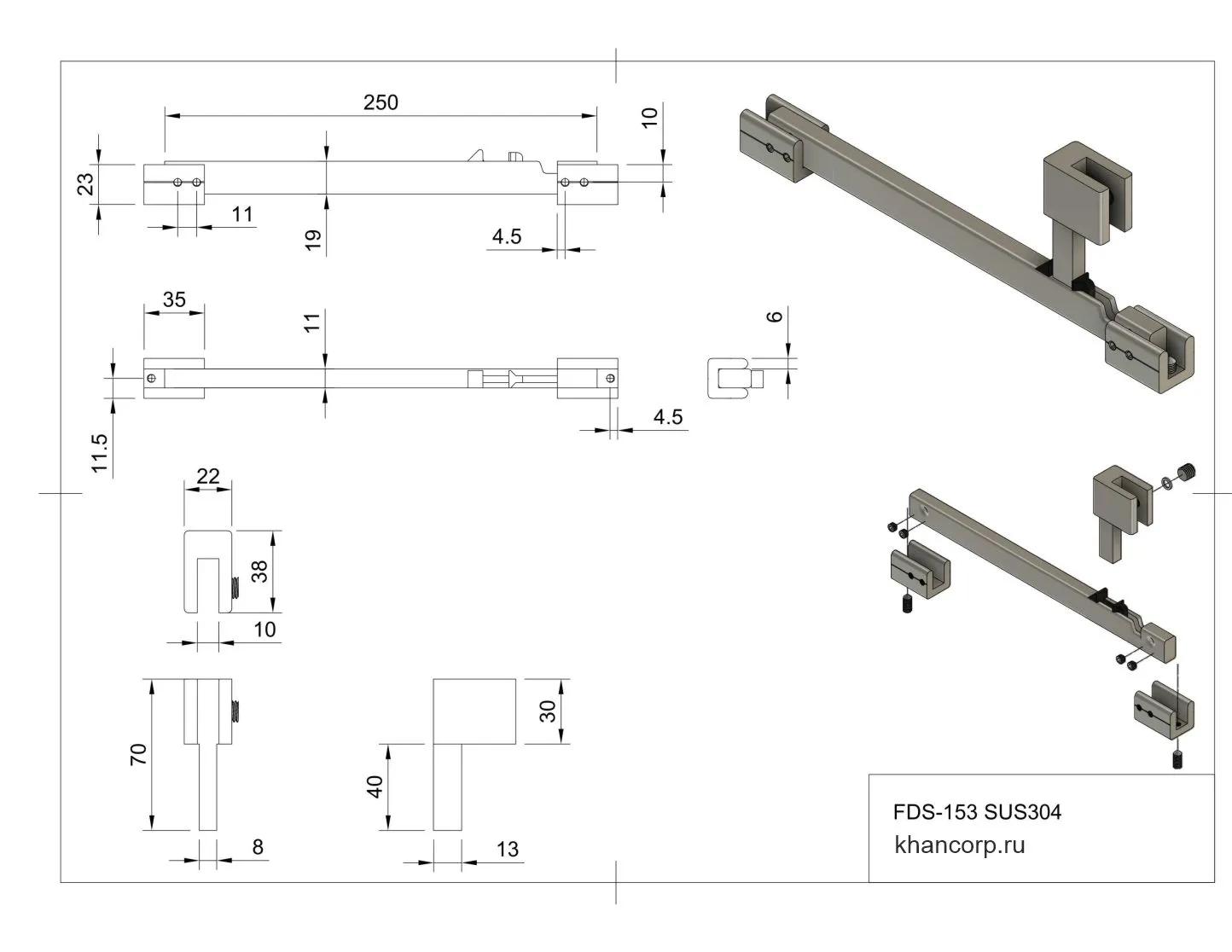 Комплект доводчиков для раздвижной системы FDS-15 с артикулом FDS-153 представляет собой качественные металлические устройства, выполненные из прочной нержавеющей стали, которая обладает высокой устойчивостью к коррозии и истиранию. Поверхность изделий покрыта специальной матовой эмалью, что придает продукту стильный и солидный внешний вид, хорошо соответствующий современному интерьеру.