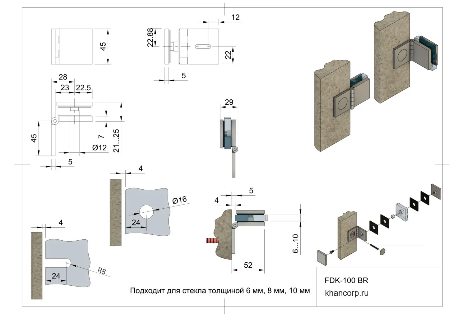 Толщина стекла | 6 мм, 8 мм, 10 мм |