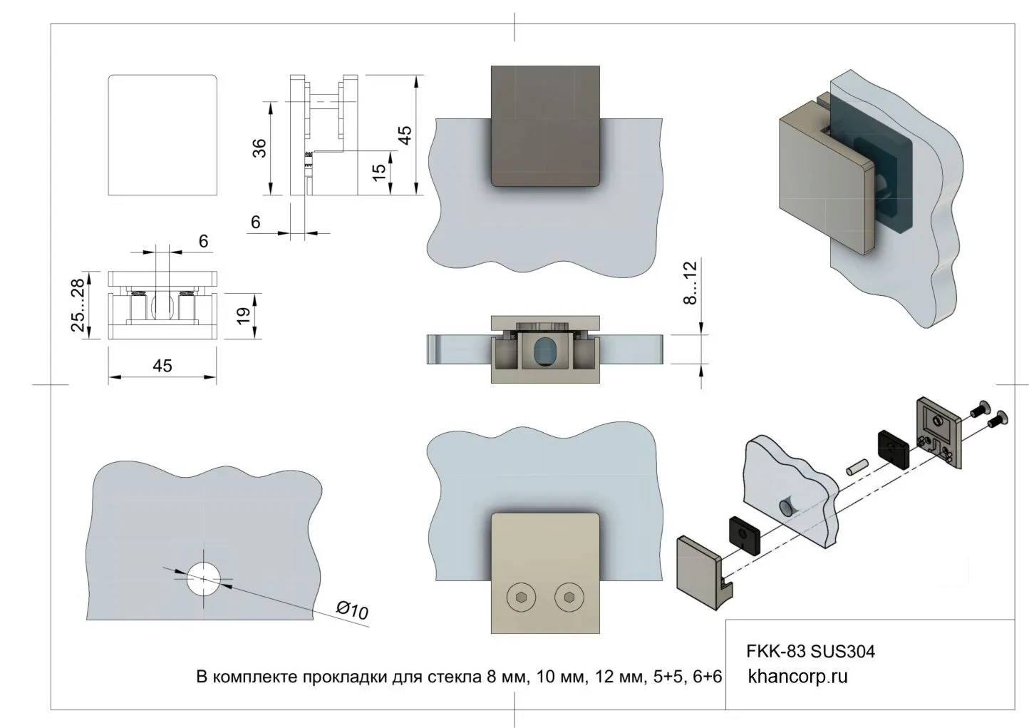 Толщина стекла | 8 мм, 10 мм, 12 мм |