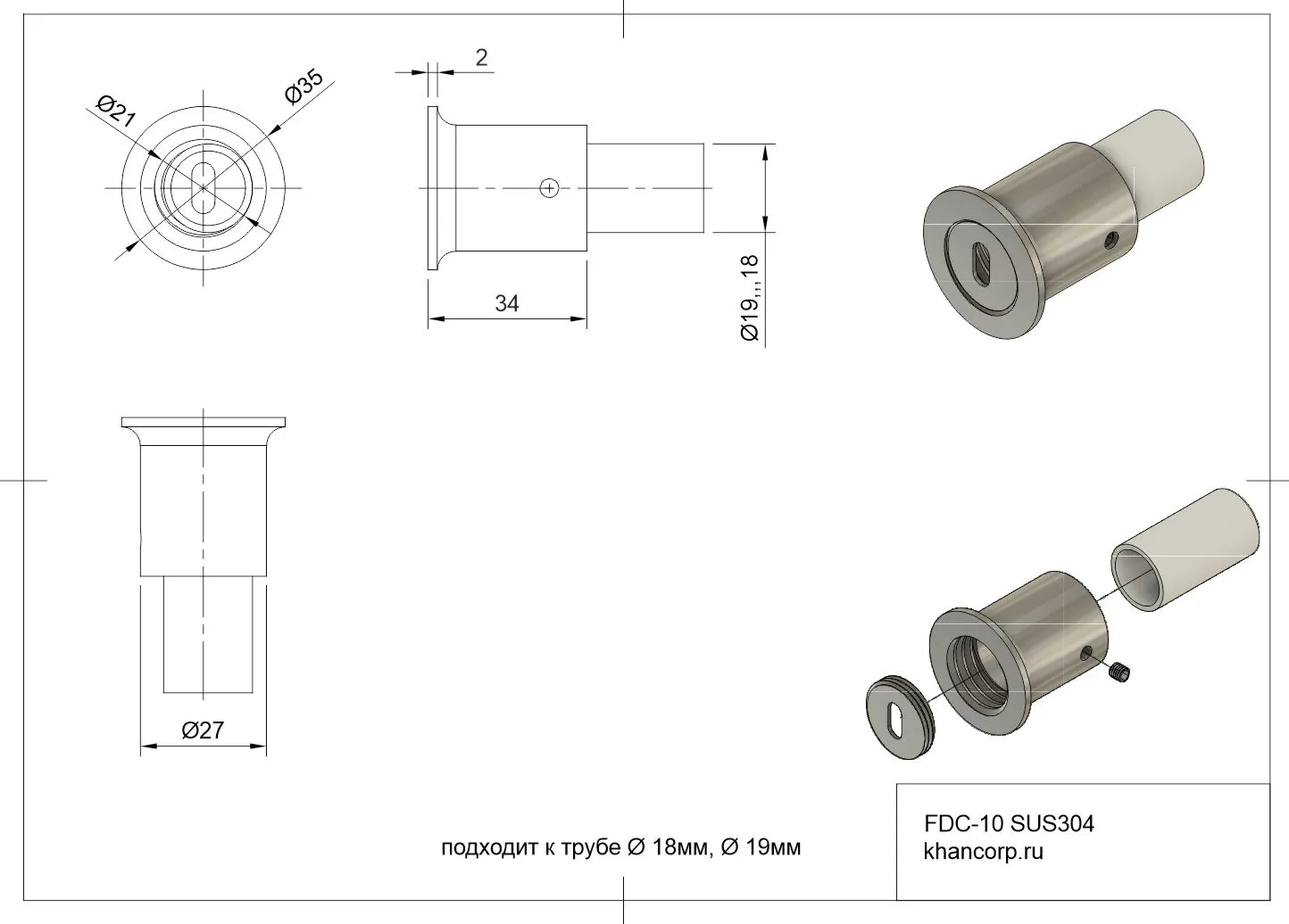 Конструкция элемента допускает использование труб двух стандартных диаметров: основной рабочий диапазон рассчитан на трубу диаметром 19 мм, однако возможна работа и с трубопроводом меньшего размера — 18 мм, что делает данное изделие удобным решением для различных проектов, позволяя компенсировать незначительные отклонения размеров комплектующих. Таким образом, соединитель FDC-10 является важным компонентом в процессе сборки надежных и функциональных раздвижных механизмов душевых кабин.