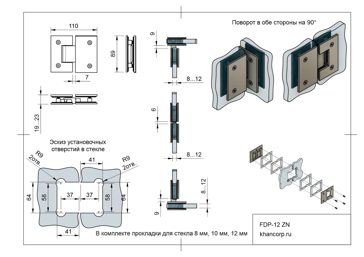 Толщина стекла | 8 мм, 10 мм, 12 мм |