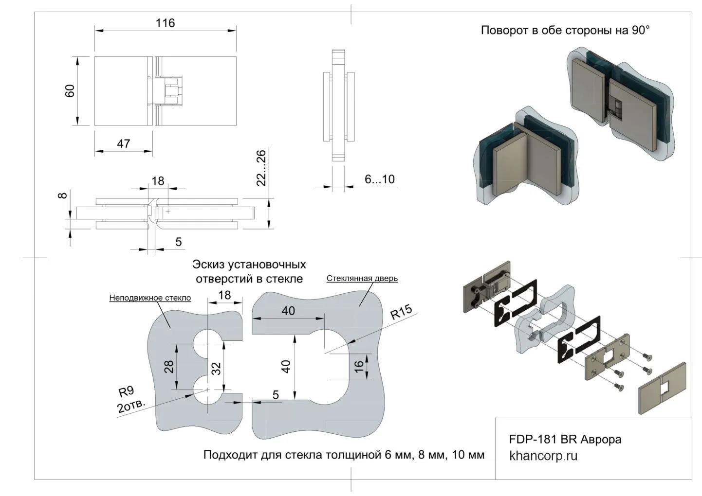 Толщина стекла | 6 мм, 8 мм, 10 мм |