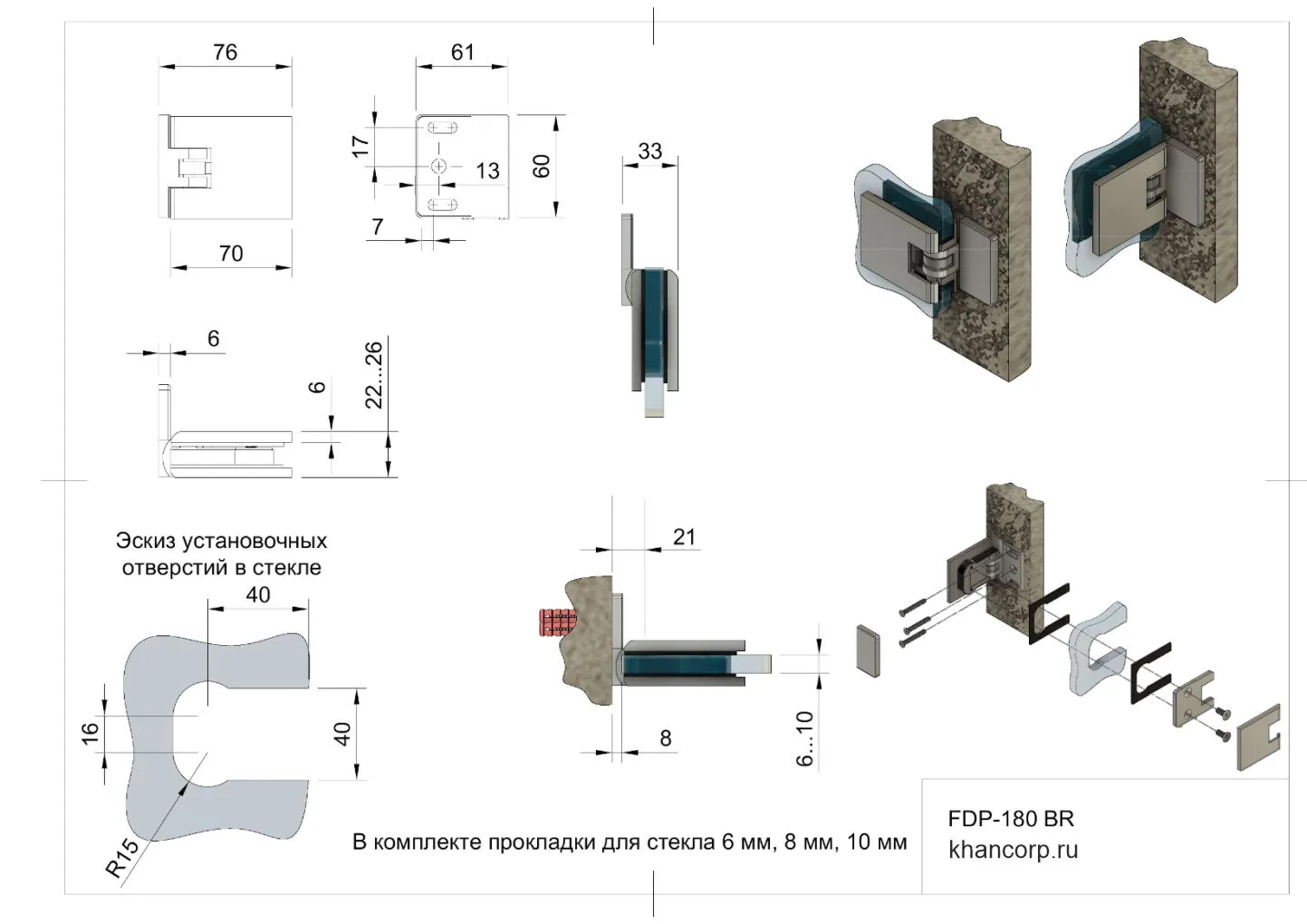 Толщина стекла | 6 мм, 8 мм, 10 мм |