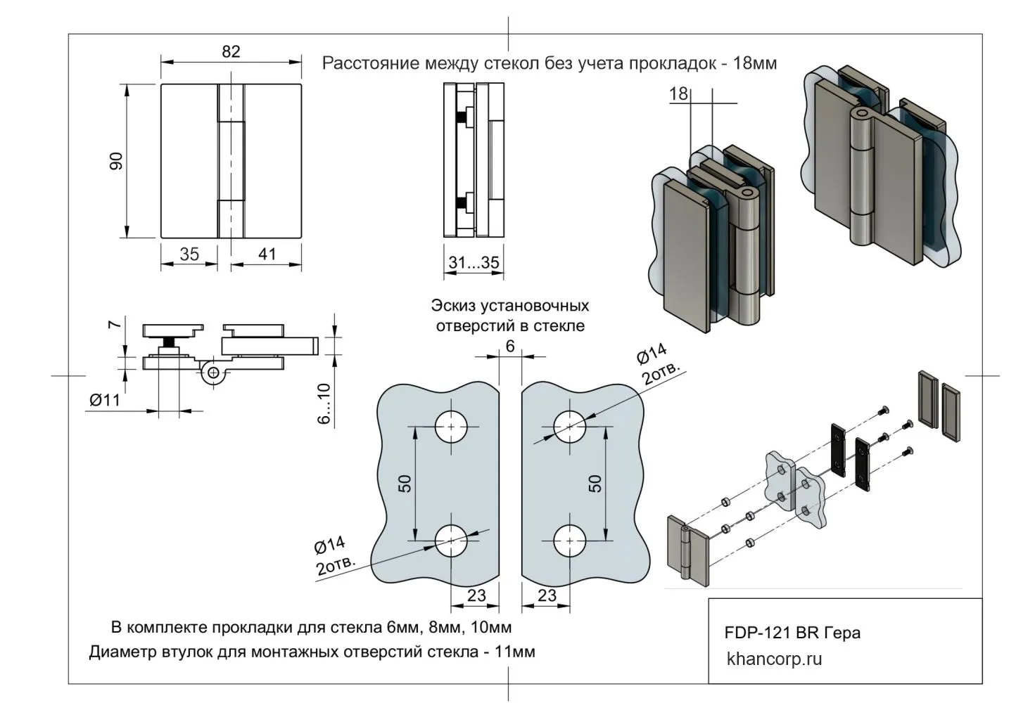 Петля Гера FDP-121 предназначена для крепления стеклянной двери к стационарному стеклу под углом 180°, стекло-стекло. Петля Гера укомплектована декоративными крышками для скрытых креплений и силиконовыми вкладышами, представляет премиальный класс фурнитуры для стеклянных дверей. Премиум класс означает: идеальную поверхность покрытия фурнитуры, гармоничный дизайн, более высокое качество материалов втулок и вкладышей. Душевая петля Гера обеспечивает открывание стеклянной двери на 180° в одну сторону. Предназначена для дверей из закаленного стекла толщиной 6, 8 и 10 мм. Выполнена из высококачественной латуни.