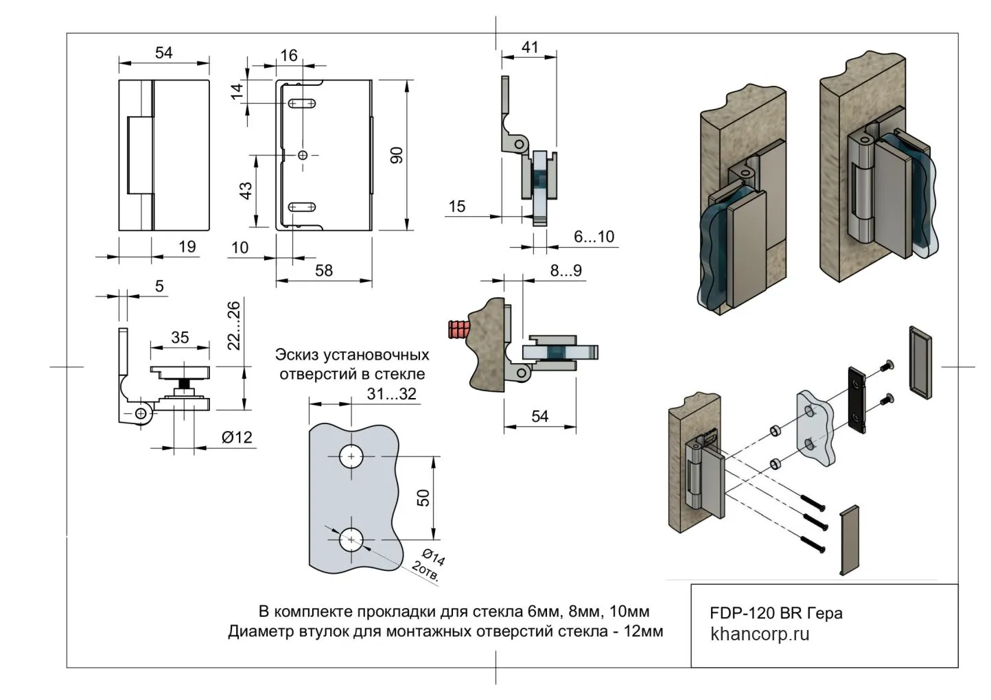Петля Гера FDP-120 предназначена для крепления стеклянной двери к стене под углом 90°, стена-стекло. Петля Гера укомплектована декоративными крышками для скрытых креплений и силиконовыми вкладышами, представляет премиальный класс фурнитуры для стеклянных дверей. Премиум класс означает: идеальную поверхность покрытия фурнитуры, увеличенную толщину покрытия, гармоничный дизайн, более высокое качество материалов втулок и вкладышей. Душевая петля Гера обеспечивает открывание стеклянной двери наружу на 90°. Предназначена для дверей из закаленного стекла толщиной 6, 8 и 10 мм. Выполнена из высококачественной латуни.
