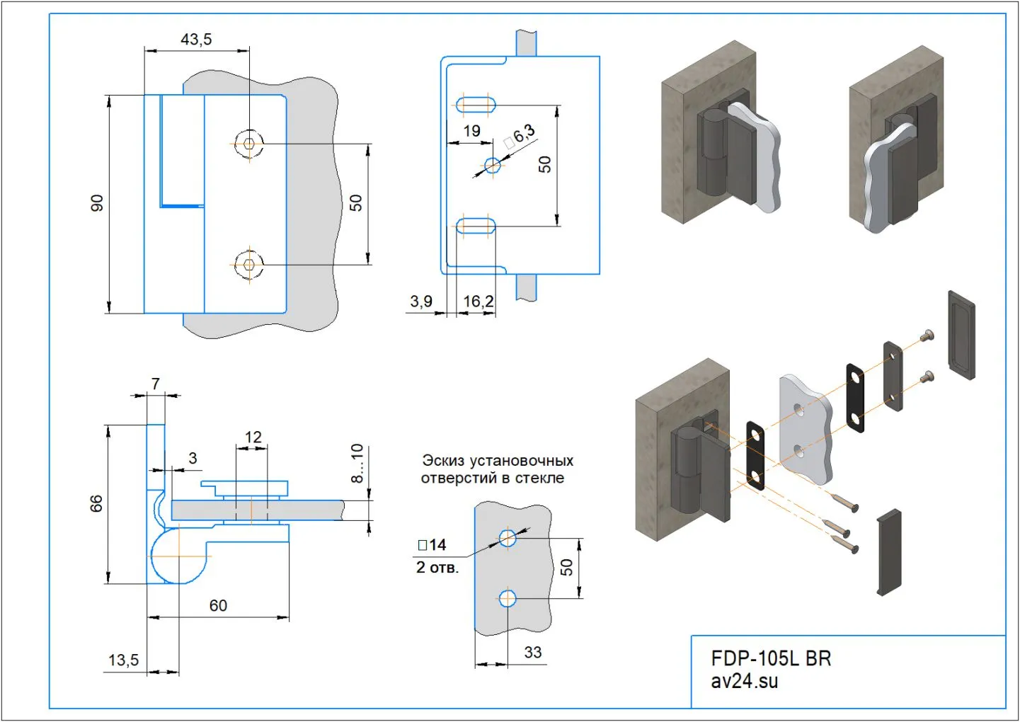 Подходит для закаленных стекол толщиной 8 и 10 мм. Изготовлена из латуни.