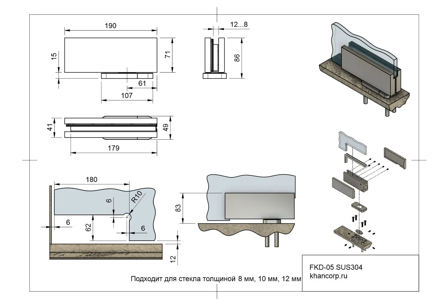 Толщина стекла | 8 мм, 10 мм, 12 мм |