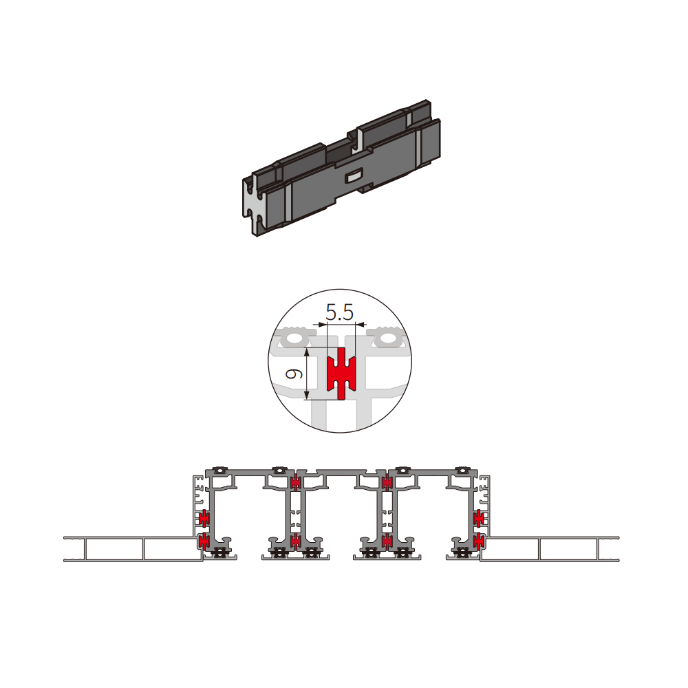Клипса FMPA-14 GR используется для объединения элементов конструкции, включая соединение треков и боковых крышек раздвижных систем.