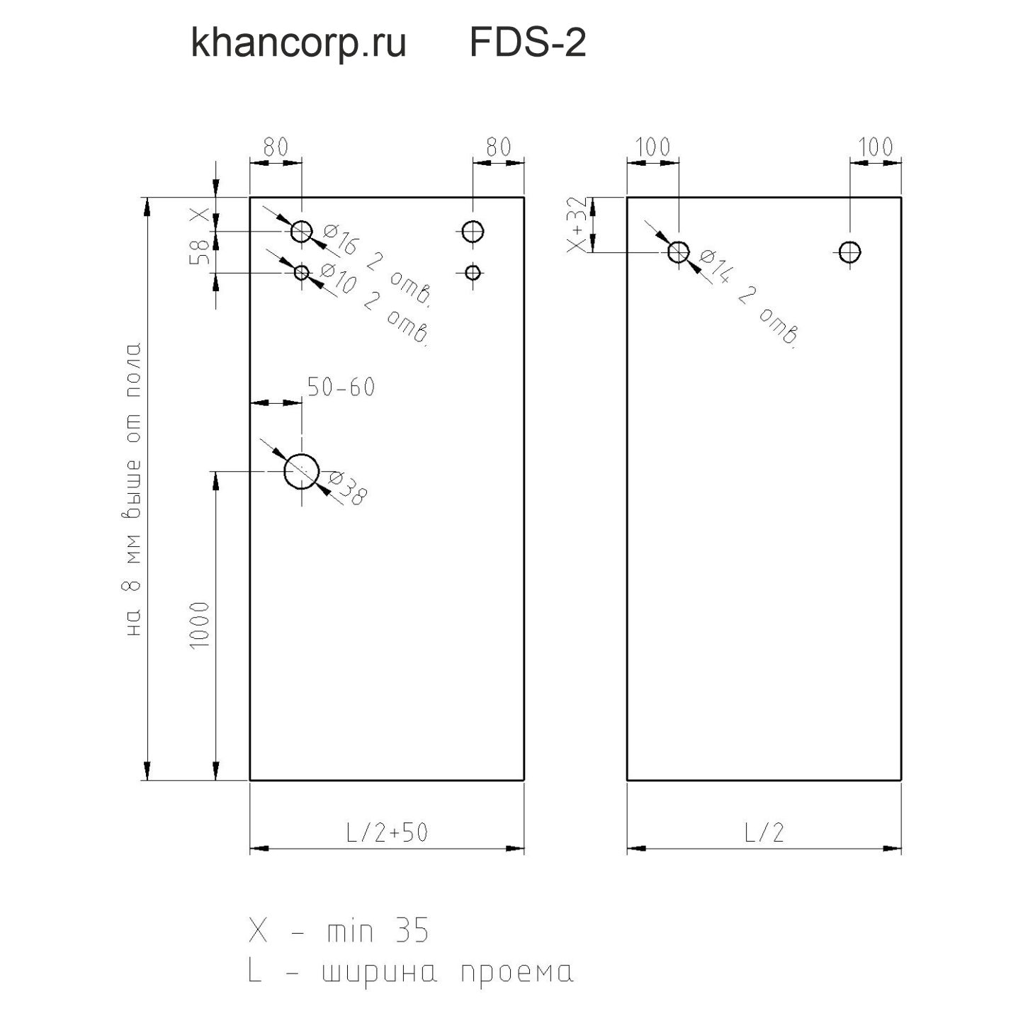Раздвижная система предназначена для создания душевых кабин из стекла с раздвижной конструкцией двери. В системе FDS-2 в качестве направляющей используется прямоугольная труба размером 30х10 мм (приобретается отдельно). Монтаж трека осуществляется к неподвижной стеклянной панели душевой кабины посредством двух держателей трека, а также к стенам душевой ниши с использованием крепления трека к стене. В угловых или П-образных душевых кабинах трек фиксируется к стеклу одним или двумя специализированными креплениями под углом 90° (FDC-34), которые не включены в комплект.