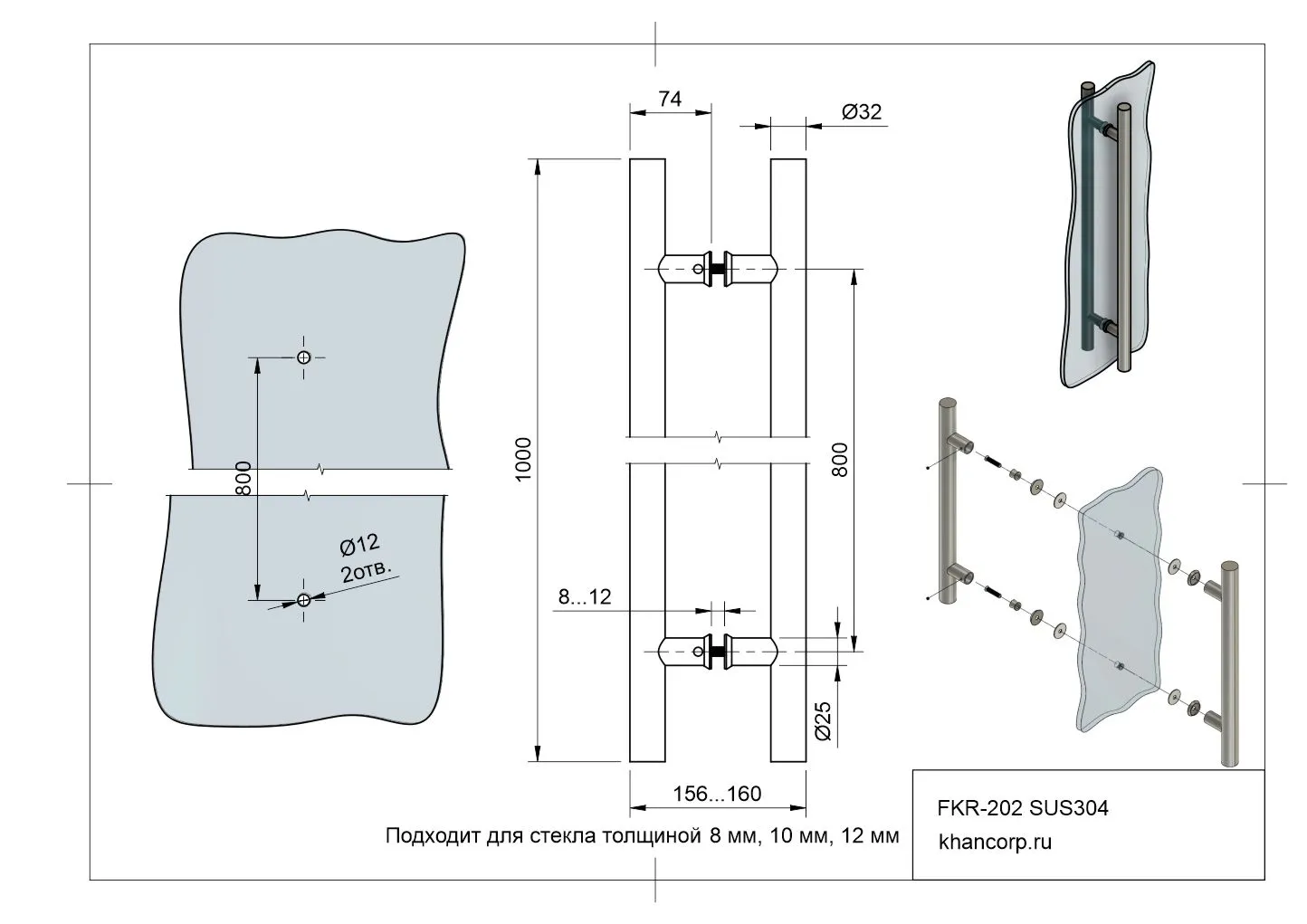 Толщина стекла | 8 мм, 10 мм, 12 мм |