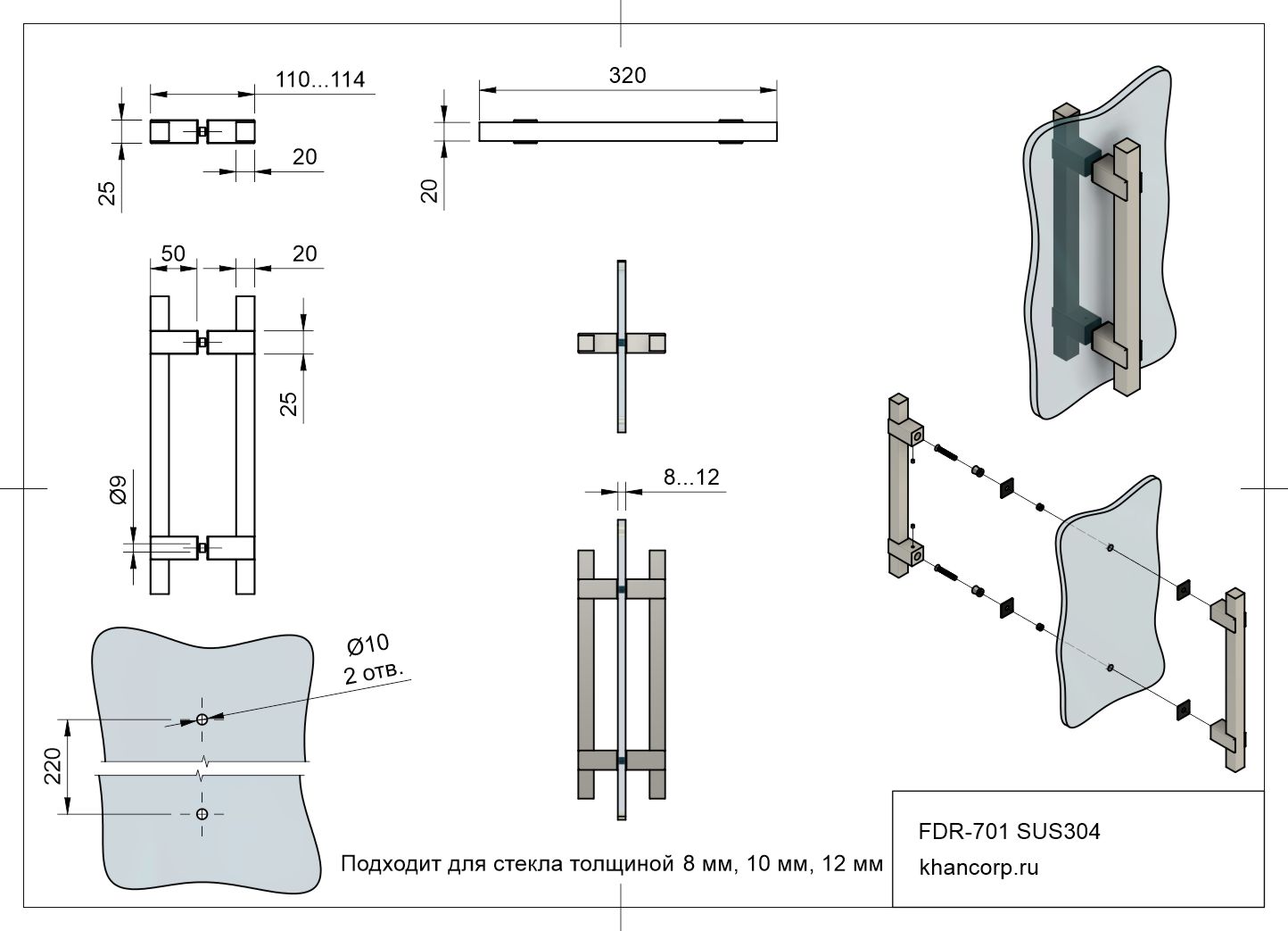 Оптимальная толщина стекла, на которую рассчитана эта модель, находится в пределах от 8 до 10 мм, что создает идеальные условия для безопасного и надежного крепления. Для монтажа применяется стандартный крепежный элемент — винт М8, который легко монтируется и выдерживает нагрузки, возникающие при повседневном использовании.