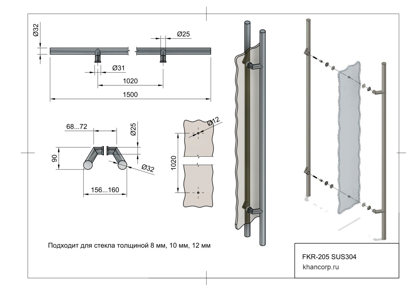 - Совместимость: подходит для стеклянных полотен толщиной 8, 10 и 12 мм.