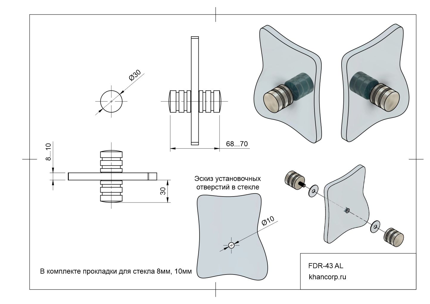 Во избежание повреждения кромки стекла при монтаже предусмотрено использование дополнительной пластиковой втулки. По умолчанию рекомендованный диаметр отверстия в стекле составляет 12 мм, рассчитанный с учетом размеров втулки. Однако установка втулки не является обязательной, и опытные специалисты чаще всего обходятся без нее, ограничивая диаметр выреза в стекле значением не более 10 мм.