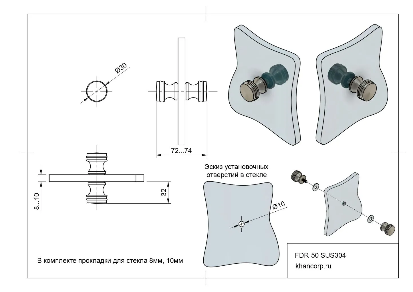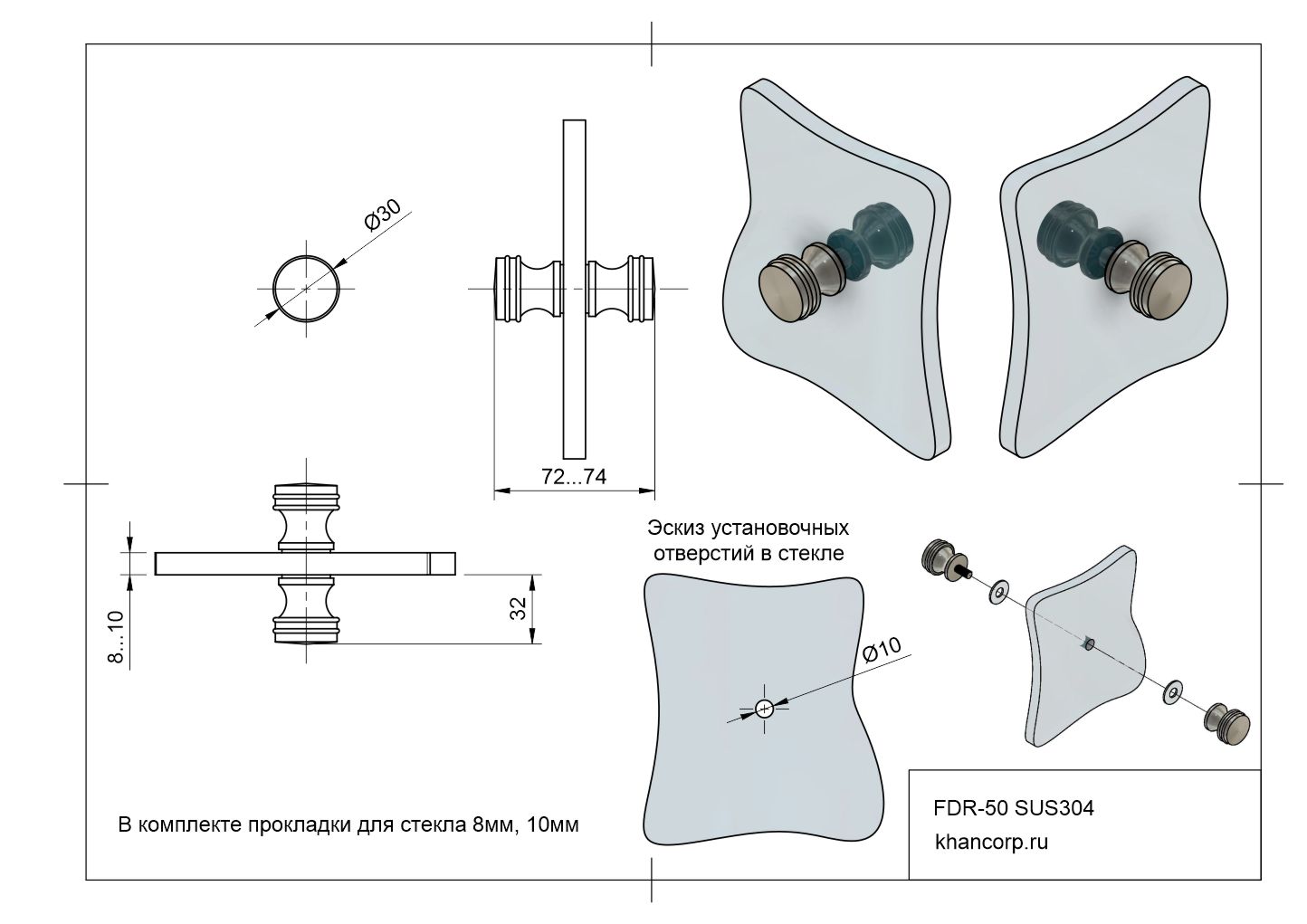 Ручка-кноб модели FDR-50 предназначена для эксплуатации в системах распашных стеклянных дверей душевых кабин. Основное назначение изделия — обеспечение удобного и надежного открывания и закрывания дверей. Фурнитура изготовлена из высококачественной нержавеющей стали, что гарантирует долговечность и устойчивость к воздействию влаги и коррозии. Применяется для установки на стеклянные полотна толщиной от 8 до 10 мм, обеспечивая оптимальное взаимодействие с поверхностью стекла и устойчивость конструкции.