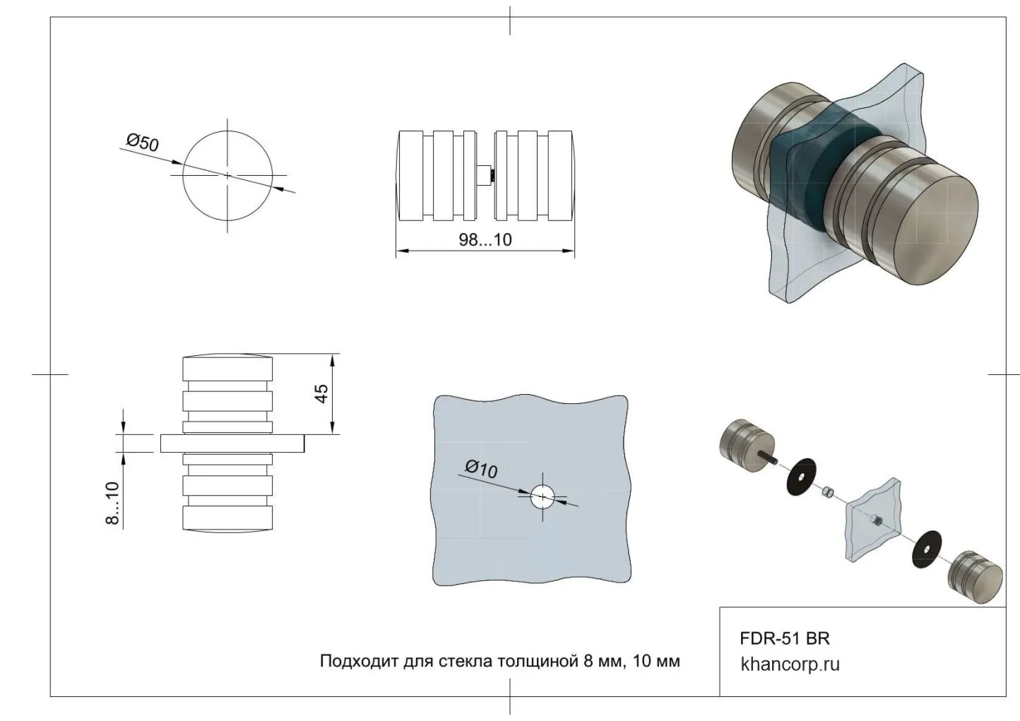 Ручка-кноб модели FDR-51 предназначена для эксплуатации в конструкциях распашных стеклянных дверей душевых кабин. Основная функция изделия заключается в обеспечении комфортного и надежного открывания и закрывания дверей. Материал исполнения — качественная латунь, которая обеспечивает высокий уровень прочности и устойчивости к различным внешним воздействиям, в частности к повышенной влажности и регулярному использованию. Ручка специально спроектирована для установки на стеклянные полотна толщиной от 8 до 10 мм, что гарантирует идеальную посадку и эффективную работу в течение длительного периода эксплуатации.