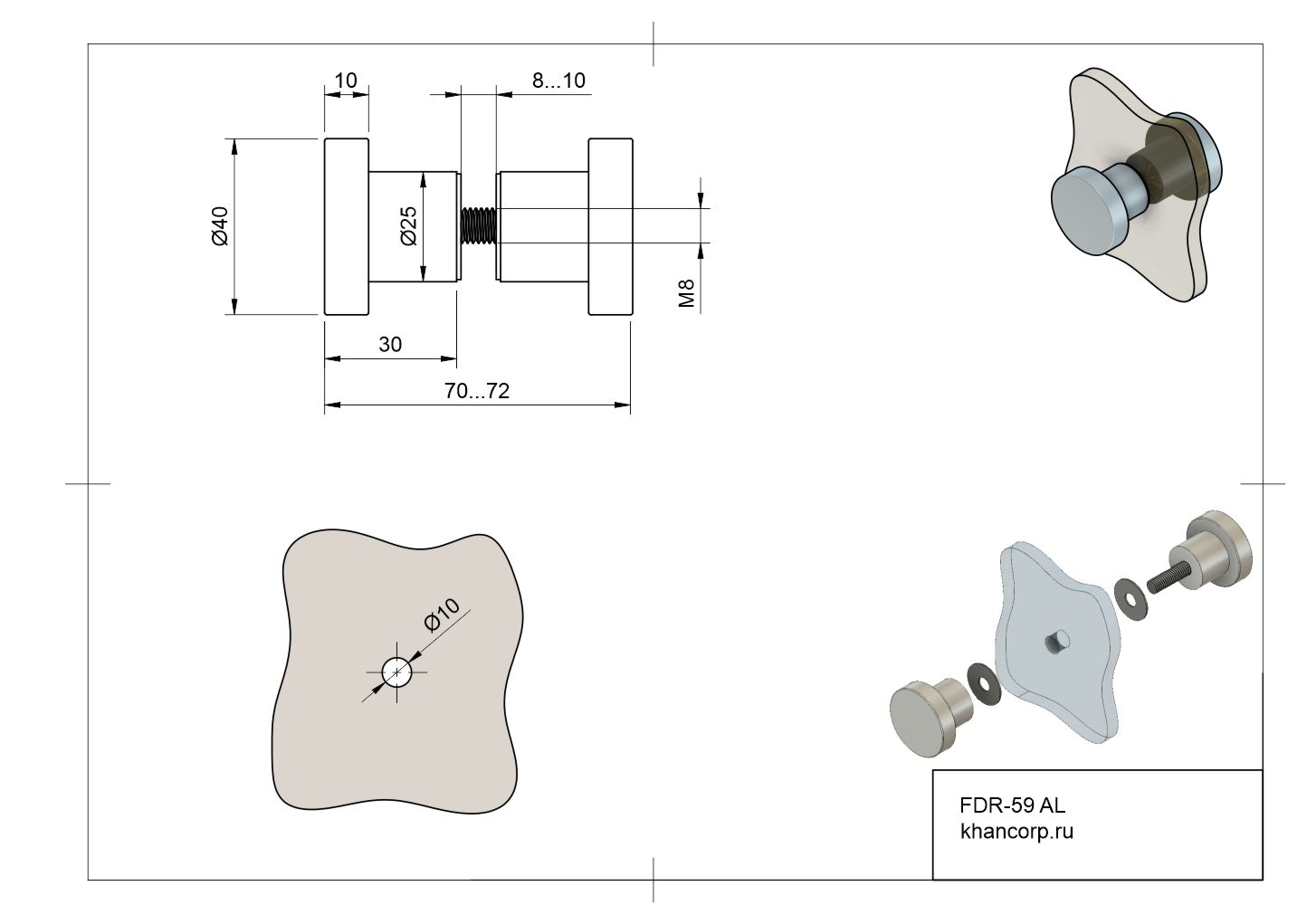 Ручка кноб модели FDR-59 предназначена специально для открывания и закрывания стеклянных дверей душевых кабин. Основные характеристики ручки включают следующие моменты: