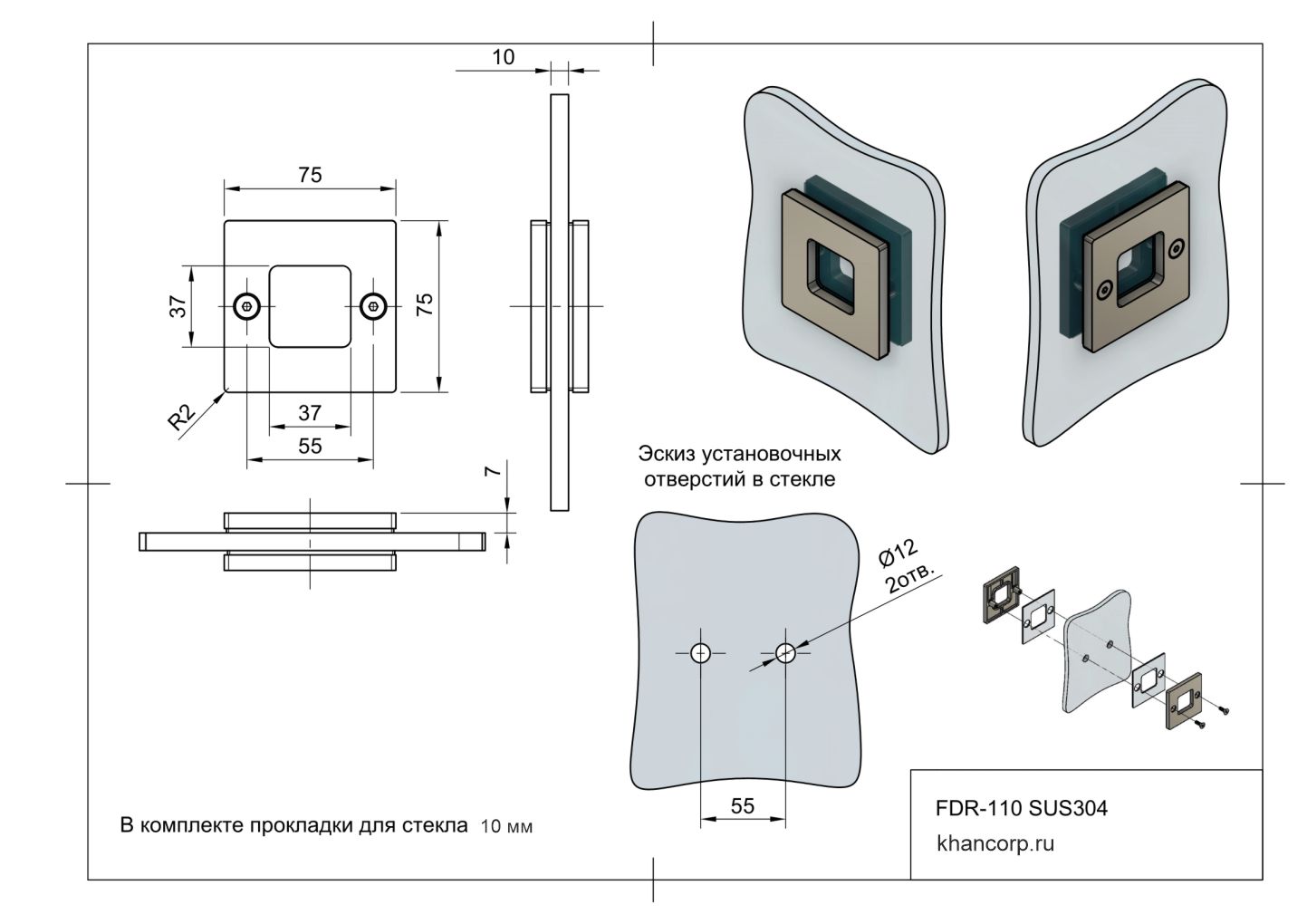 Ручка купе «Дриада» модели FDR-110 предназначена для удобной эксплуатации стеклянных раздвижных дверей душевых кабин. Изготовлена из нержавеющей стали и подходит для установки на стекло толщиной 10 мм. Форма ручки — квадратная, размеры 77×77 мм, межосевое расстояние — 57 мм.