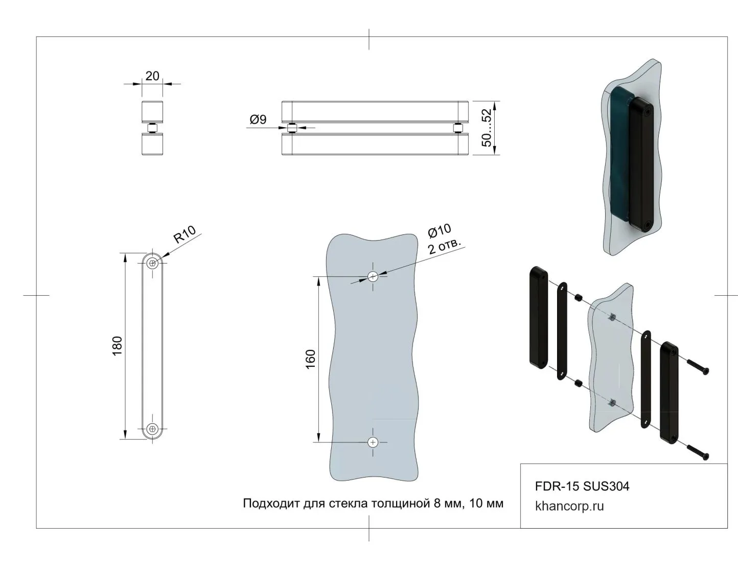 Данная модель адаптирована для установки на стеклянные полотна различной толщины — от 8 до 10 мм, что соответствует стандартам большинства современных конструкций душевых кабин. Универсальность и простота монтажа делают данную ручку подходящей практически для любого интерьера ванной комнаты.