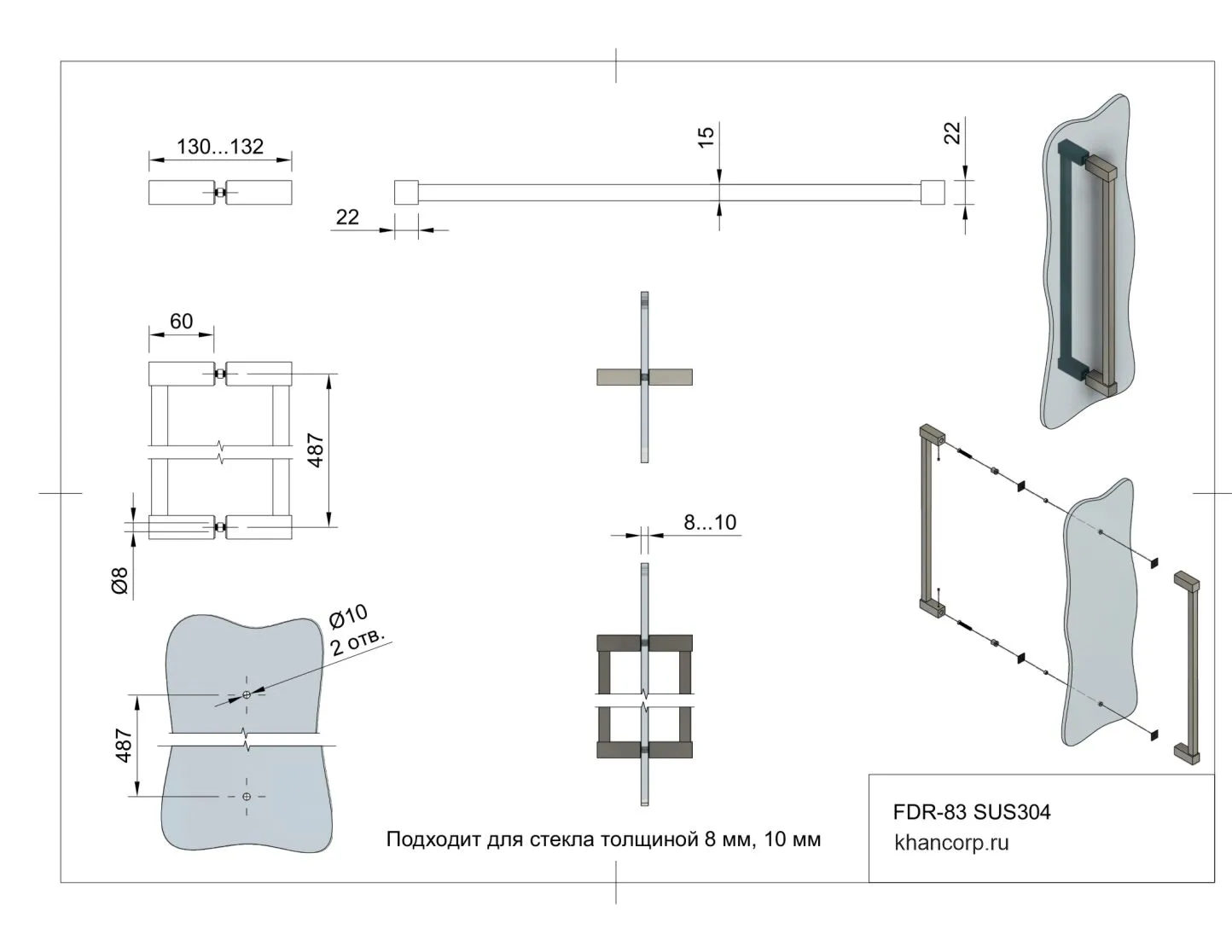 Крепление ручки предполагает создание отверстий определенного диаметра в стеклянной поверхности. Производитель рекомендует создавать отверстия диаметром 10 мм, что обеспечит точную установку и предотвратит повреждения стекла. Регулировка длины изделия и продуманная система крепления делают ручку FDR-83 идеальным решением для любого интерьера ванной комнаты.