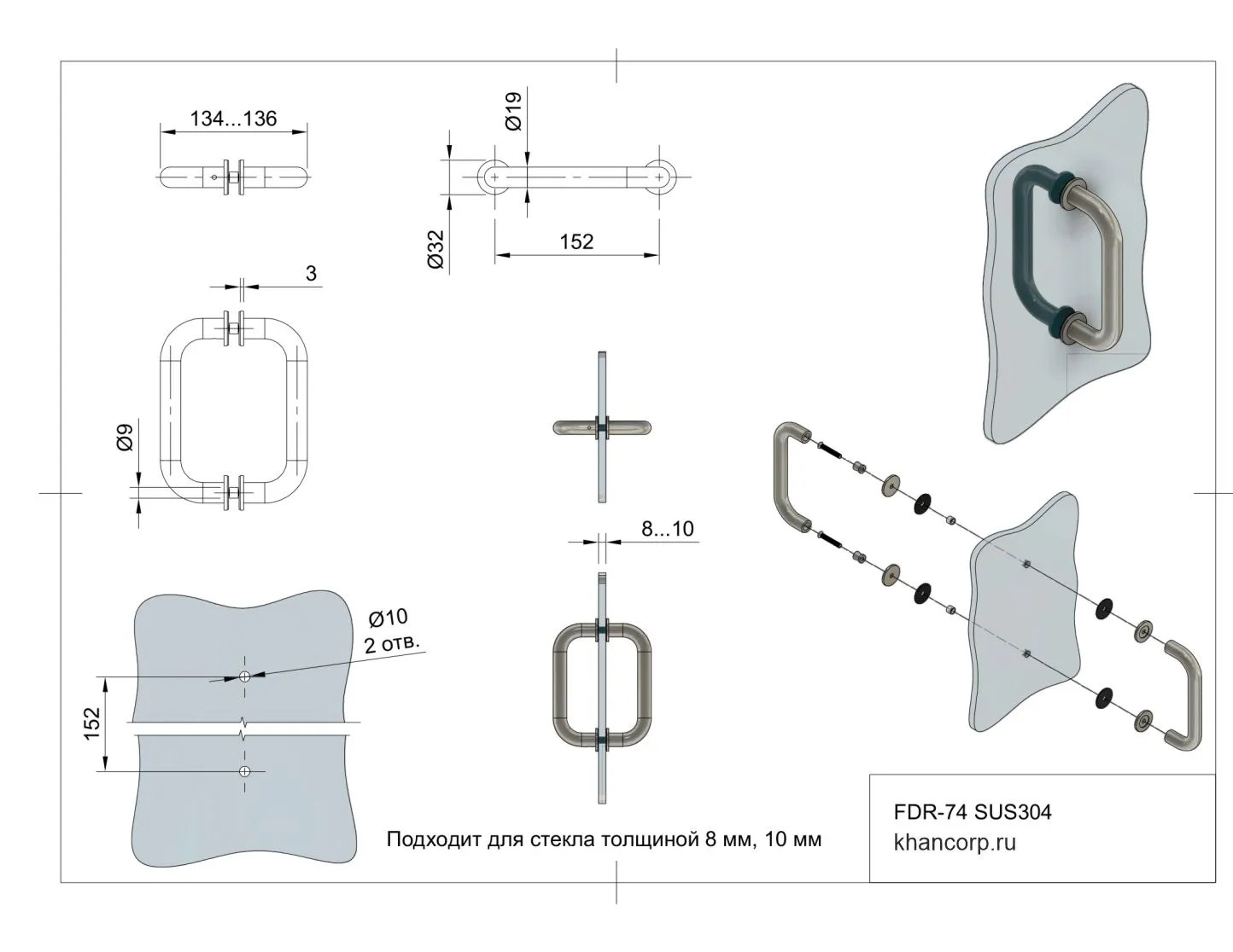 Модель адаптирована для использования на стеклянных поверхностях с толщиной от 8 до 10 мм, что соответствует большинству современных типов стеклянных панелей для душевых кабин. Крепежные отверстия в стекле должны соответствовать рекомендуемым размерам — от 8 до 10 мм, что гарантирует надежность и стабильность конструкции.