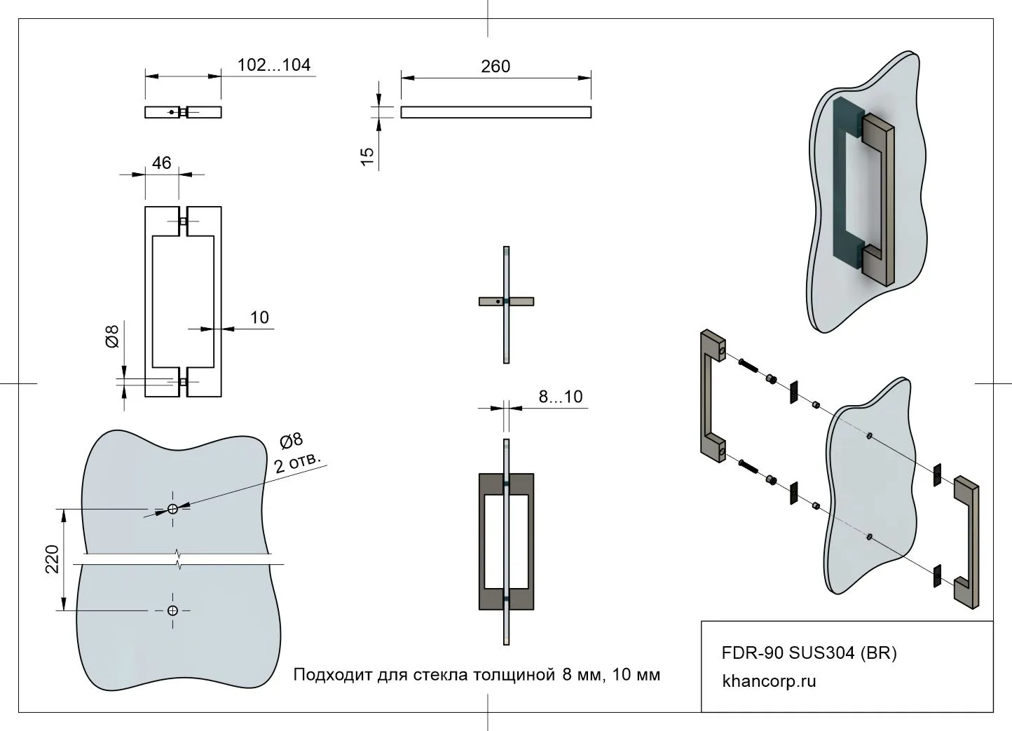 Ручка модели FDR-90, выполненная в форме скобы, изготовлена из нержавеющей стали толщиной 1 мм, что наделяет её высокими показателями прочности и долговечности. Изделие оснащено межосевым расстоянием в 220 мм, что обеспечивает оптимальную дистанцию между фиксирующими элементами и способствует удобной эксплуатации. Специфическое исполнение в виде латуни придает ручке изысканный внешний вид и подчеркивает эстетическую составляющую.