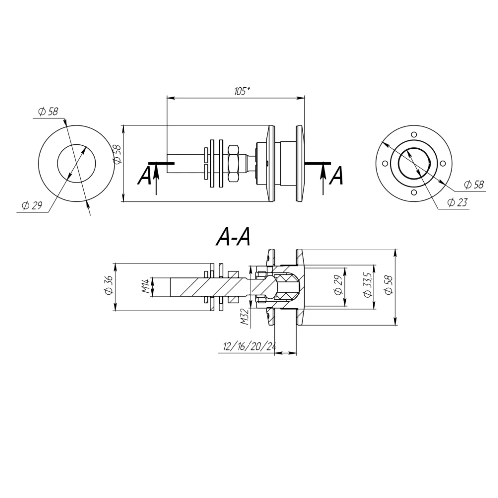 - Подходящий диаметр резьбы: 14 мм (М14)