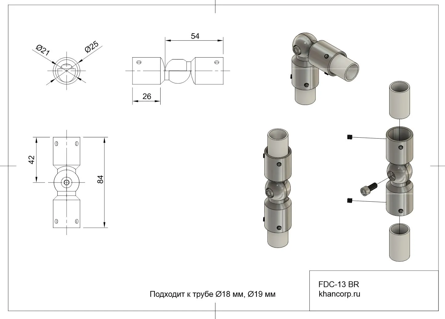 Соединитель FDC-13 представляет собой универсальный элемент, позволяющий надежно соединить круглые трубы диаметром 19 мм (совместим также с трубами диаметром 18 мм) под любым заданным углом в диапазоне от 90° до 180°. Такое конструктивное решение дает широкие возможности при создании индивидуальных решений и адаптацию к различным пространственным условиям.
