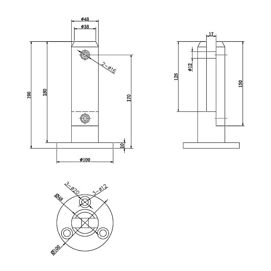 При установке требуется предусмотреть технологическое отверстие диаметром 14 мм, необходимое для правильной фиксации стойки.