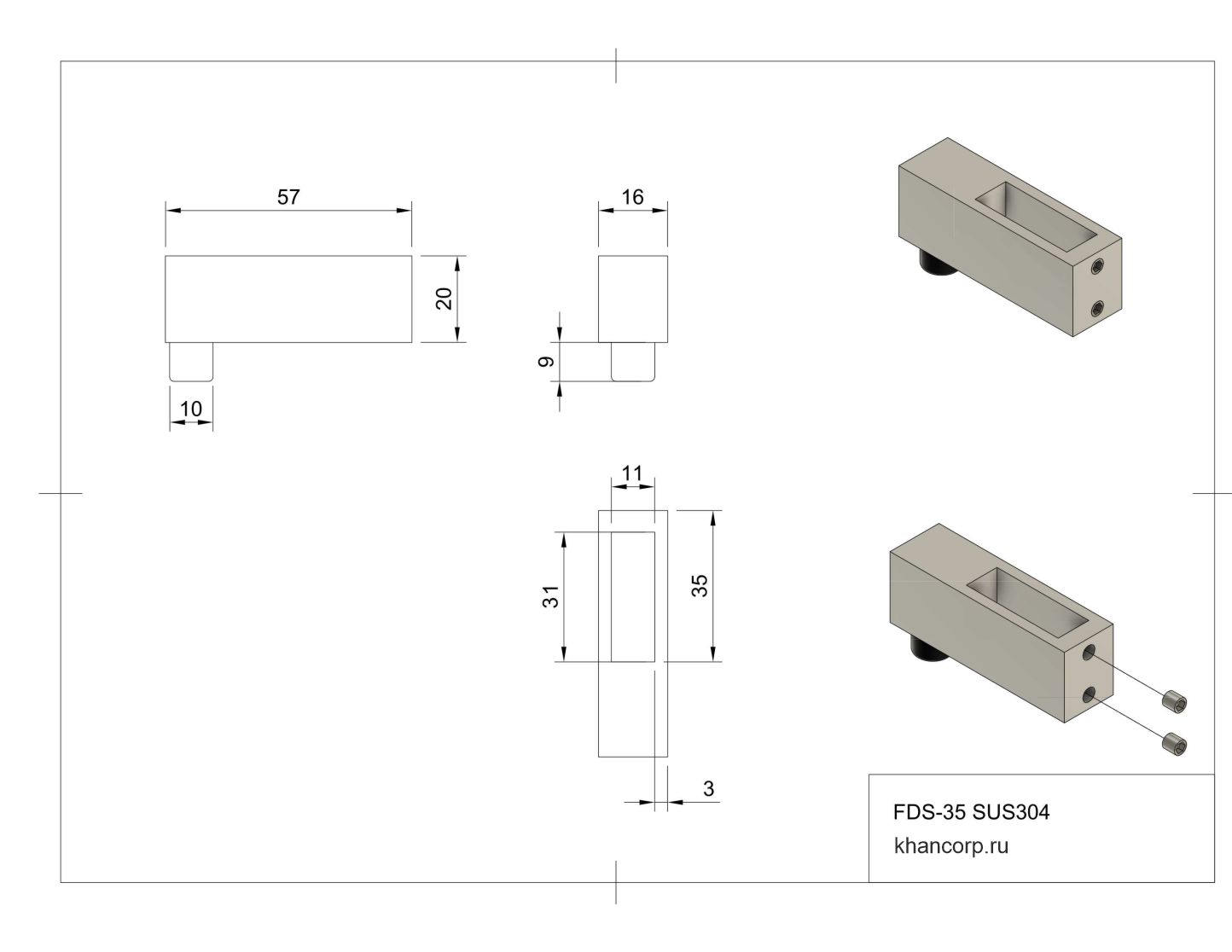 Стопор FDS-35 предназначен для контроля перемещения роликов подвижной створки душевой кабины из стекла с раздвижной системой. Этот элемент, изготовленный из нержавеющей стали марки SUS304, монтируется на прямоугольный направляющий профиль размером 30х10 мм. В комплект поставки входит 2 штуки. Цена указана за одну единицу товара.