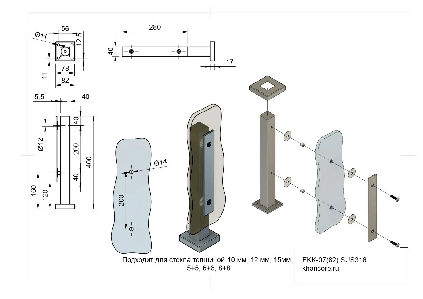 Тип фурнитуры | точечные крепления, стойки для ограждений |