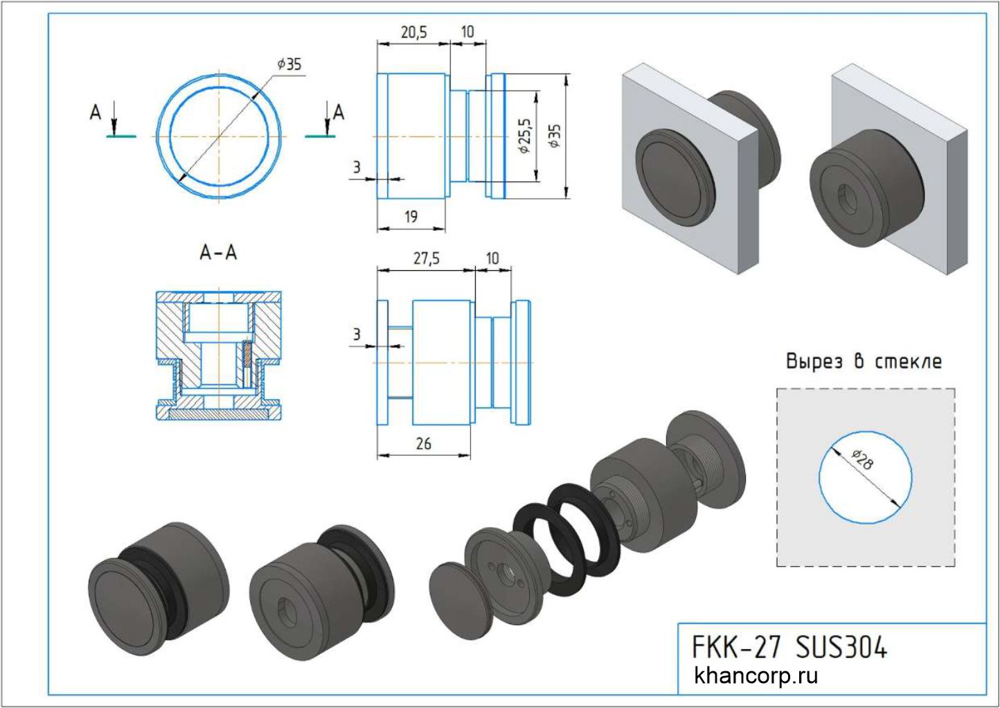 FKK-27 SUS304 — это качественное регулируемое точечное крепление диаметром 35 мм, оснащённое функциональной защитной крышкой. Конструкция крепления разработана специально для удобного и надежного монтажа стекла толщиной 10 мм.