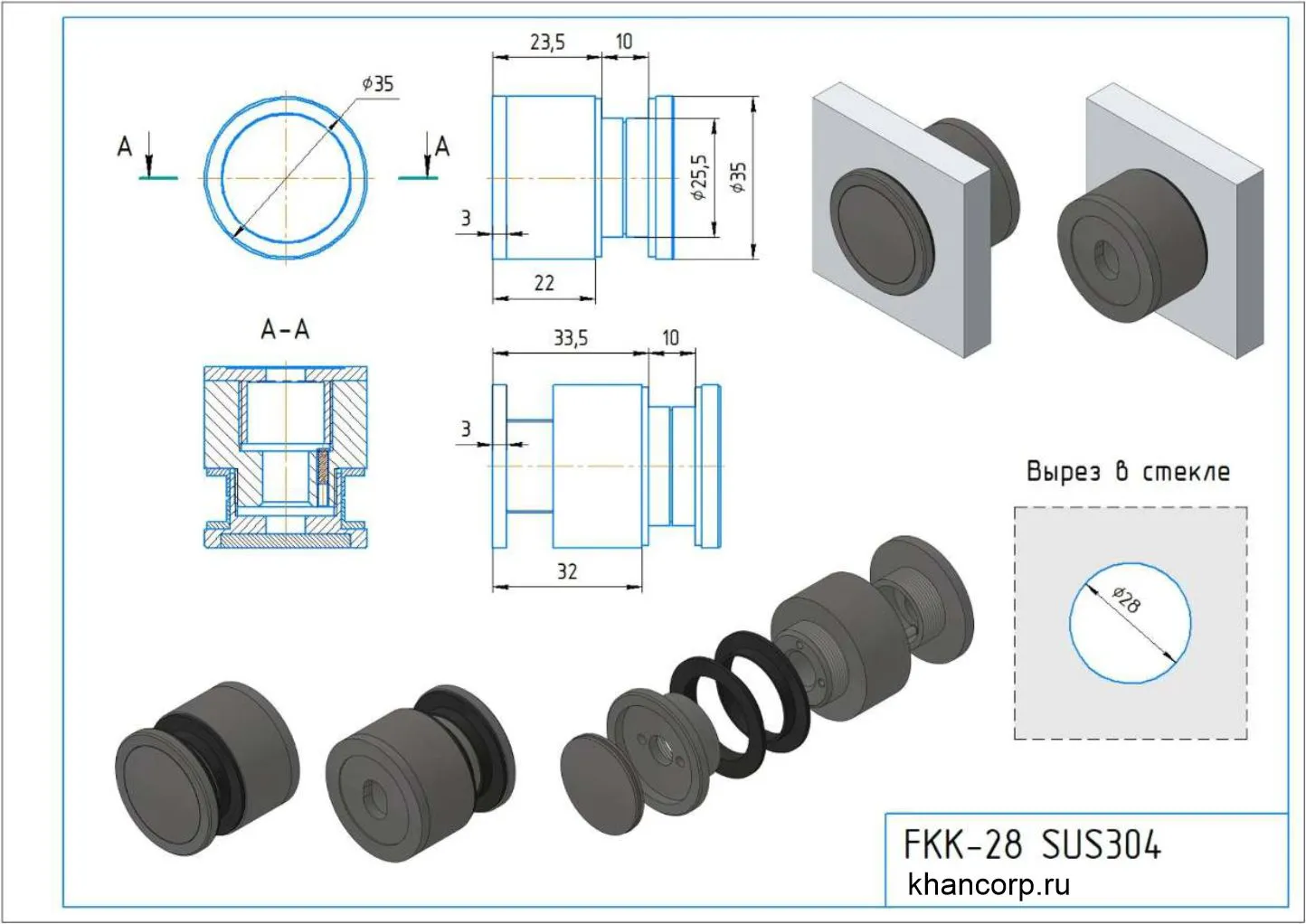 FKK-28 SUS304 — это качественное регулируемое точечное крепление диаметром 35 мм, оснащённое функциональной защитной крышкой. Конструкция крепления разработана специально для удобного и надежного монтажа стекла толщиной 10 мм.