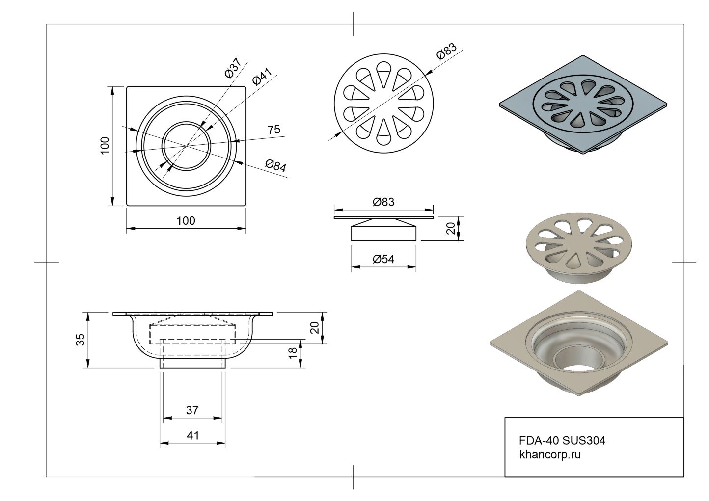Душевая решетка FDA-40 SUS304/SSS выполнена из матовой (брашированной) нержавеющей стали марки SUS304, обладающей исключительной устойчивостью к агрессивным воздействиям. Благодаря этому материалу изделие сохраняет свои функциональные свойства и первоначальный внешний вид на протяжении длительного срока эксплуатации.