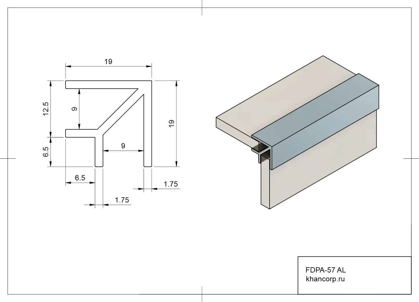 Размеры профиля: высота — 19 мм, ширина — 19 мм, толщина стенки — 1,75 мм, длина — 3 метра.