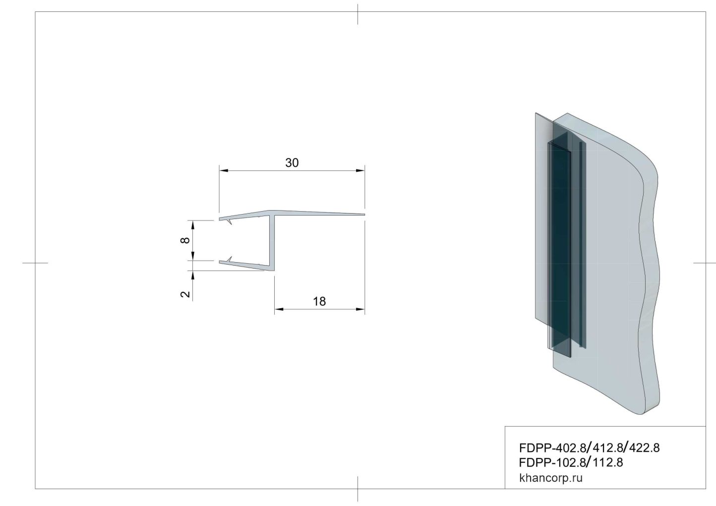 Ч-образный силиконовый уплотнитель FDPP-401.8 премиум-класса для душевых кабин. Отличительной особенностью является наличие уплотнительного "лепестка" шириной 18 мм. Профиль премиального качества изготовлен из ПВХ с добавлением антигрибковых компонентов для повышенной защиты от плесени и грибка. Данный уплотнитель разработан для предотвращения проникновения воды между подвижной и неподвижной стеклянными панелями душевой кабины.