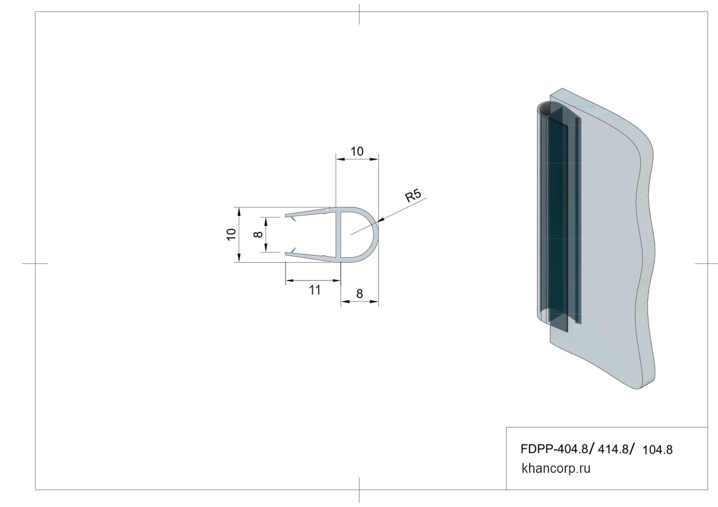 Высококачественный A-образный силиконовый уплотнитель FDPP-414.8 для душевых кабин. Произведен из ПВХ с добавлением антигрибковых компонентов, что позволяет максимально предотвратить протекание воды из душевой кабины. Рассчитан на использование со стеклом толщиной 8 мм. В основном применяется в душевых кабинах. Монтаж на стекло осуществляется простым нажатием.