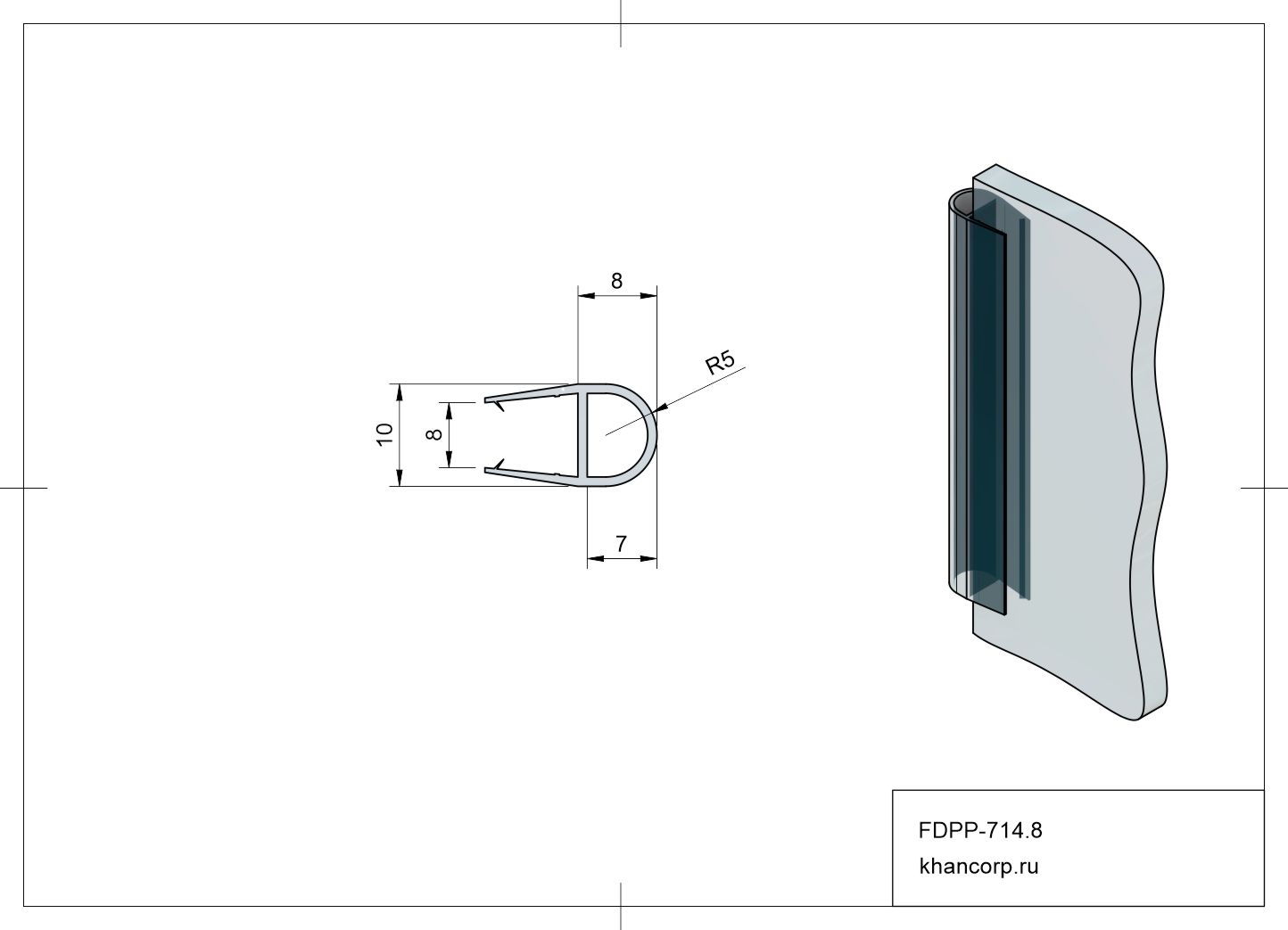 Силиконовый уплотнитель для душевой кабины модели FDPP-714.8 имеет узкий профиль А-образной формы и относится к классу премиум. Его глубина крепления на стеклянную поверхность составляет 5.5 мм. Данный продукт выполнен из высококачественного поливинилхлорида (ПВХ), содержащего специальные добавки с противогрибковыми свойствами, что позволяет значительно повысить эффективность защиты помещения от проникновения воды вне пределов душевой зоны. За счёт специально подобранной небольшой высоты посадочного места уплотнителя достигается стильный и аккуратный внешний вид конструкции. Оптимально подходит для использования с листовым стеклом толщиной 8 мм и чаще всего применяется именно в оборудовании душевых кабин. Установка изделия осуществляется простым методом нажатия на поверхность стекла.