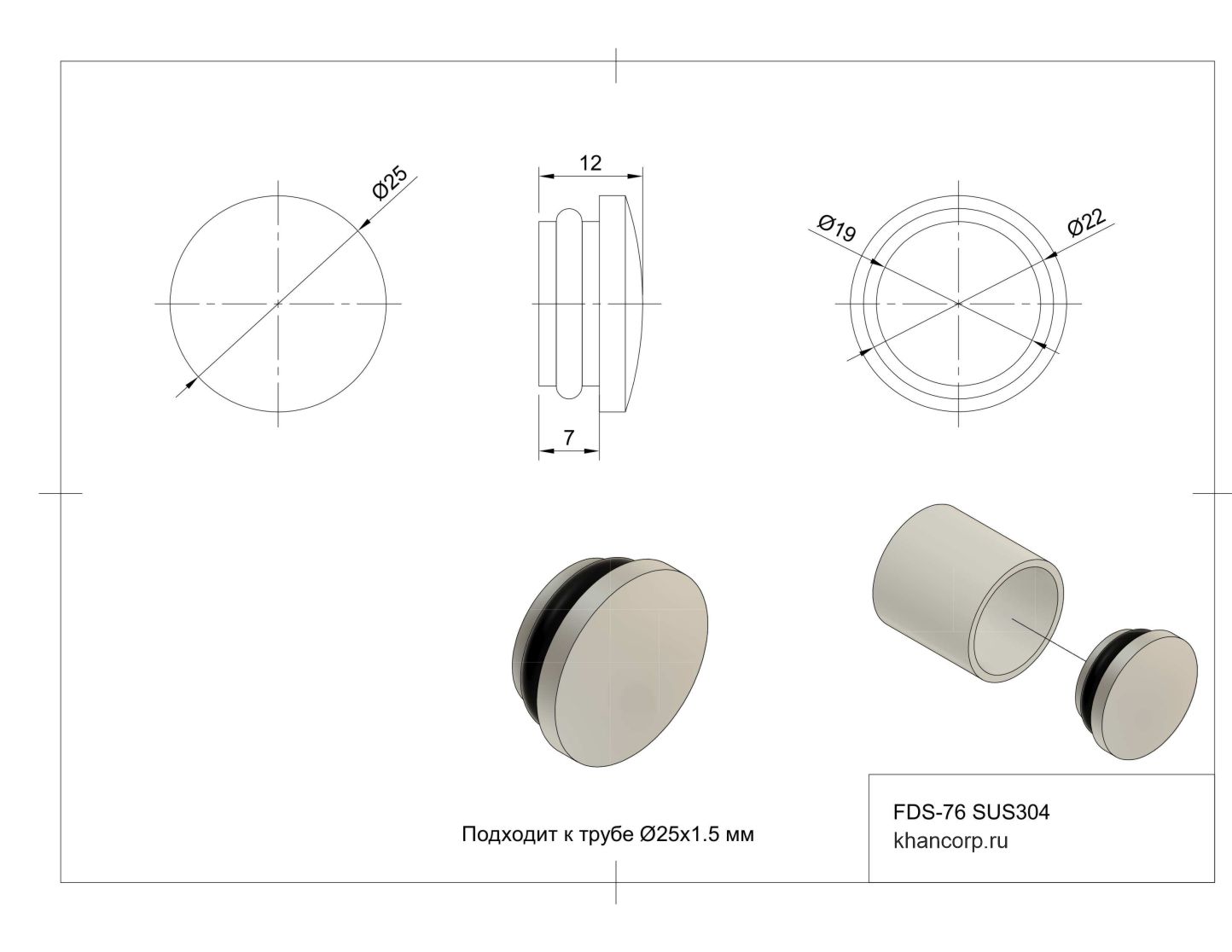 Заглушка для трубы диаметром 25 мм предназначена для фиксации и герметизации конца трубы при установке её вплотную к стене.