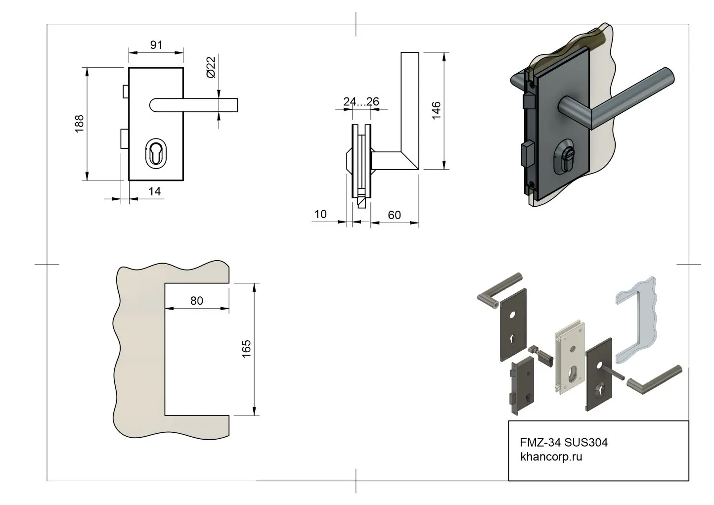 Замок FMZ-34 с механизмом «ключ/защёлка» произведён из высококачественной нержавеющей стали SUS304. Подходит для установки на стеклянные полотна толщиной 10–12 мм. Комплект поставки включает сам замок, цилиндровый механизм с ключом и ответную планку для монтажа на стену.