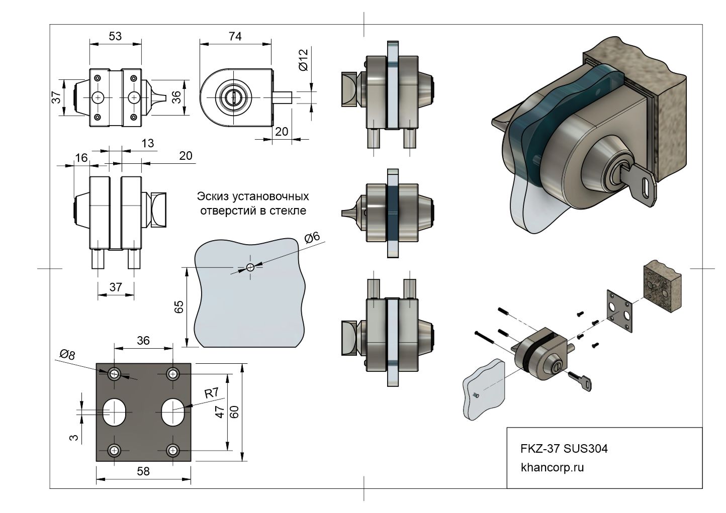 Сам корпус замка выполнен из качественного сплава нержавеющей стали SUS304, известного своими характеристиками устойчивости к коррозии и неблагоприятному влиянию окружающей среды. Этот замок рекомендован для установки на стеклянные полотна толщиной от 10 до 12 мм, что соответствует большинству современных стандартов толщины стекла для дверей.