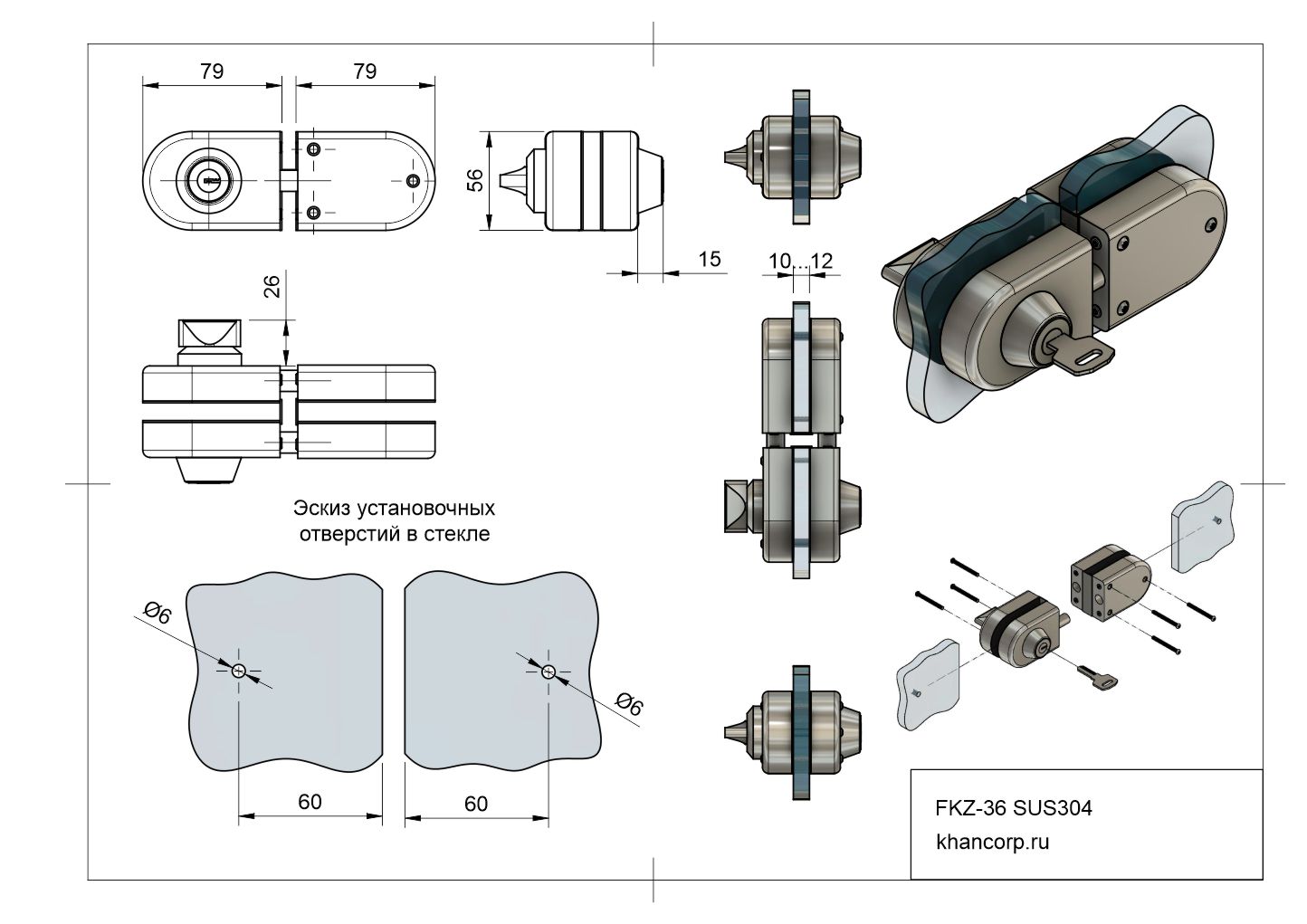 Корпус замка изготовлен из высококачественной нержавеющей стали SUS304, известной своей стойкостью к коррозии и долговечностью в любых климатических условиях. Подходит для стеклянных полотен толщиной от 10 до 12 мм, что расширяет сферу его применения в интерьерах разного стиля и назначения.